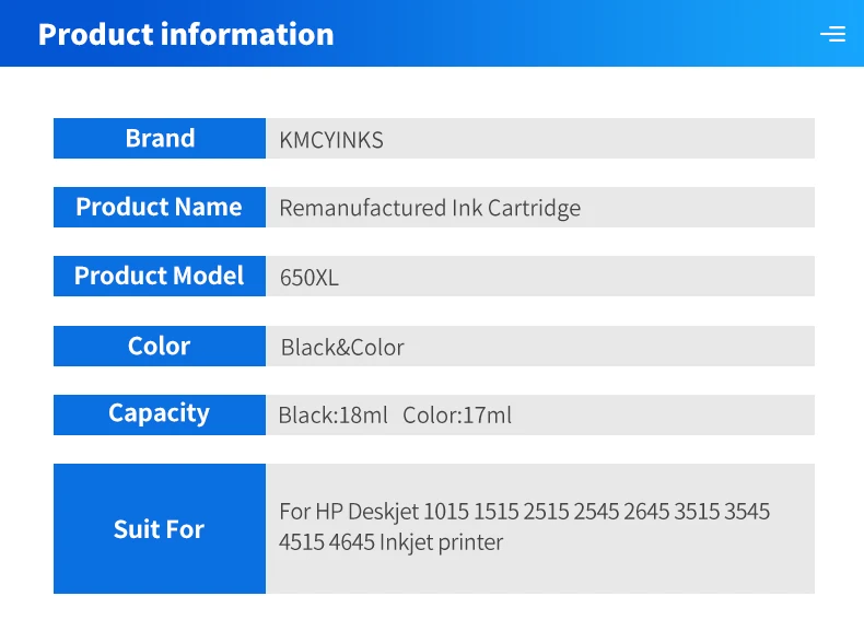 Modelo de producto:Para cartucho de tinta HP 650XL