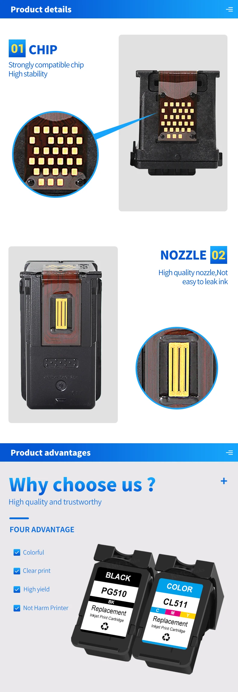 Si su cartucho de tinta original es PG510 CL511(o PG510XL CL511XL), puede comprar PG510XL CL511XL en nuestra tienda;