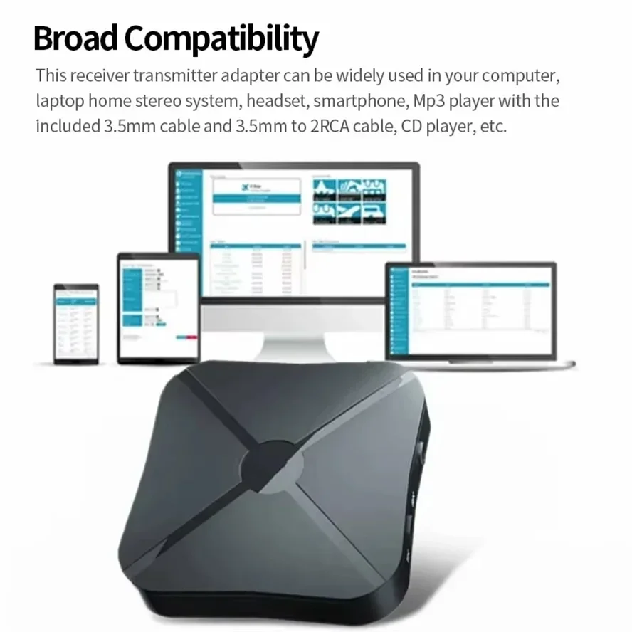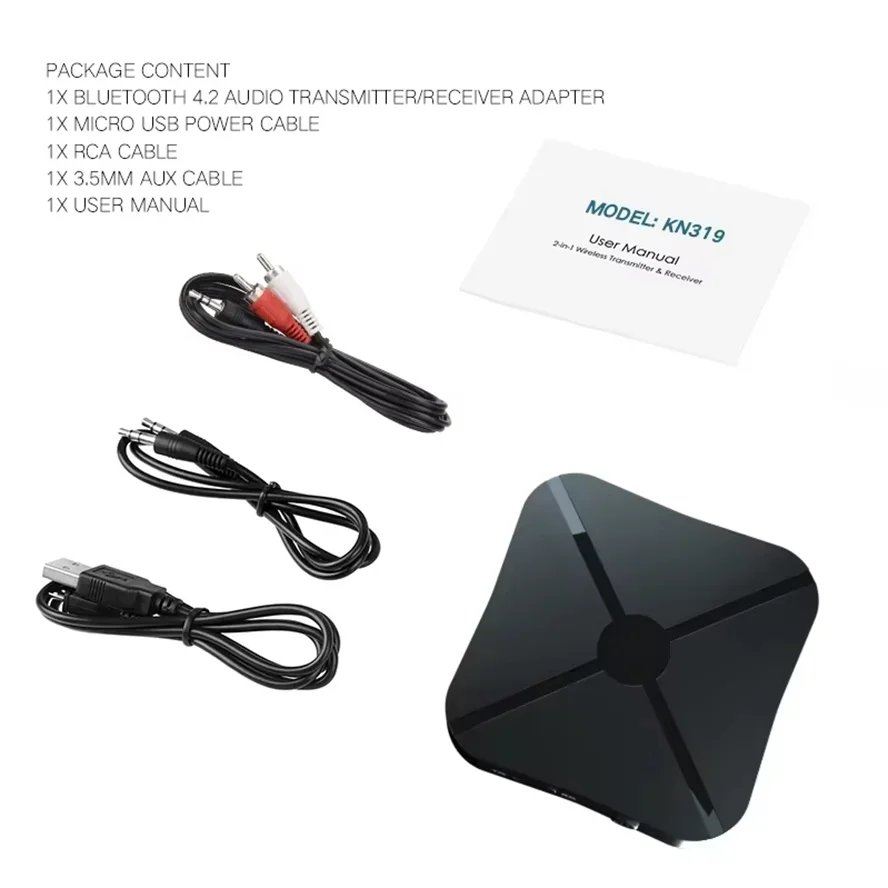 Package Content:1x Bluetooth 5.0/4.2 Audio Transmitter/Receiver Adapter1x Micro USB Power Cable1x RCA Cable1x 3.5mm Aux Cable1x User Manual