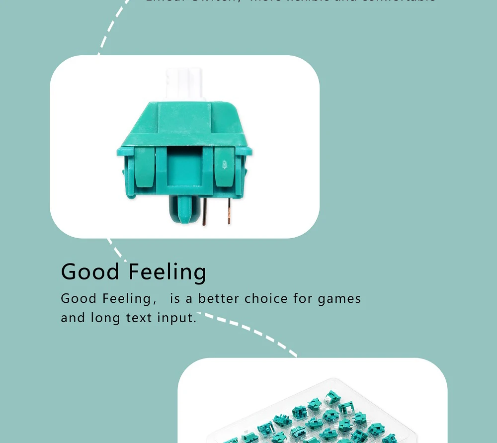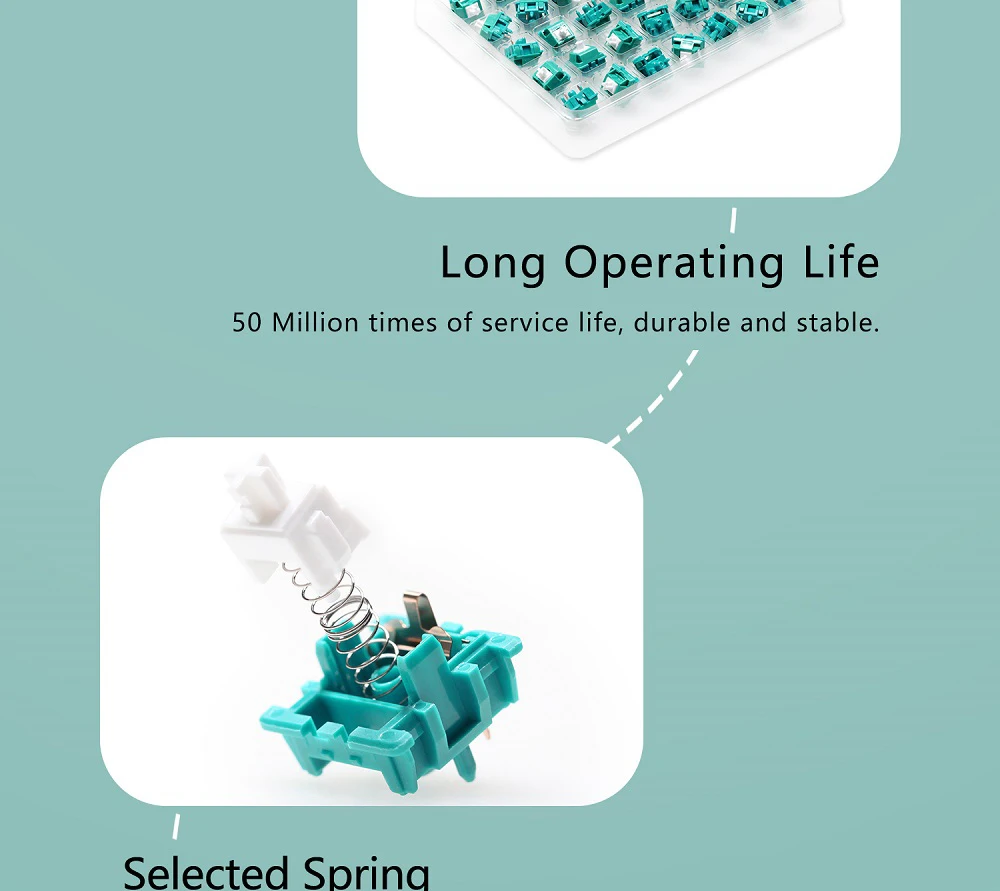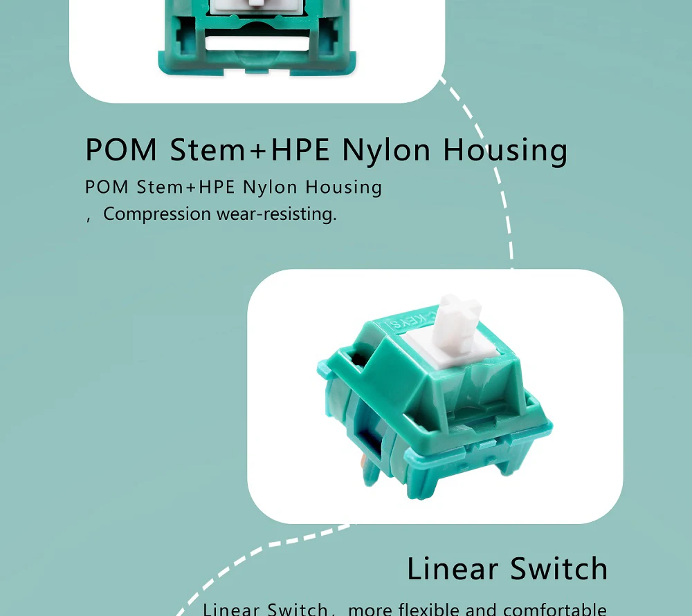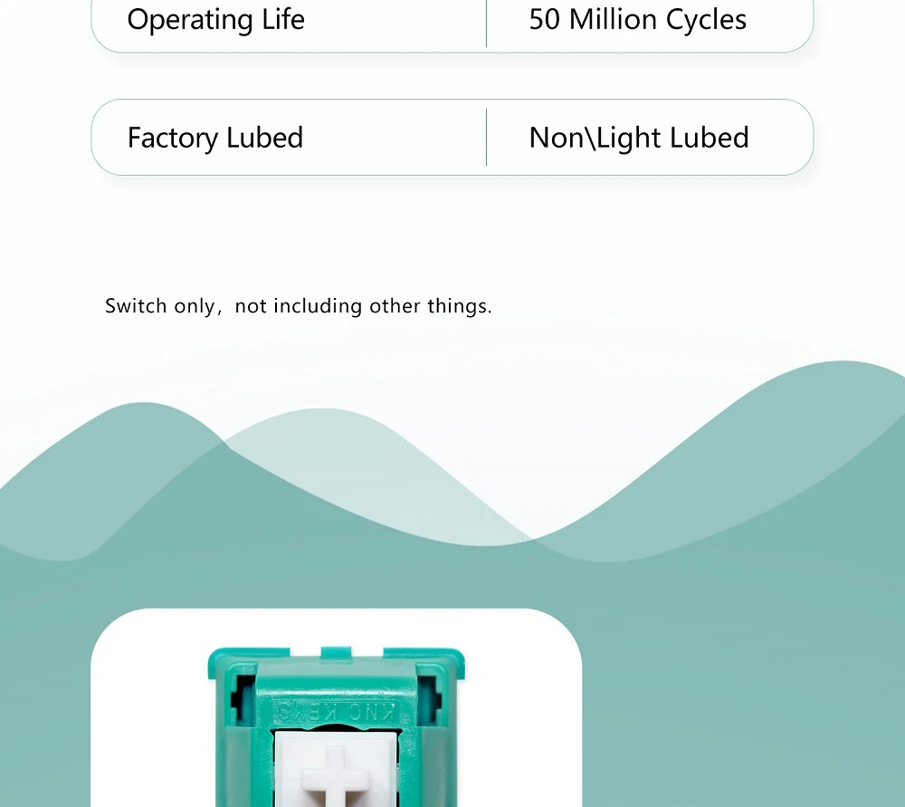 Comprar KNCKEYS-Interruptor de tallo largo para teclado mecánico, interruptor lineal de chaqueta verde, 63,5g, mx, fábrica Lubed HPE, nailon POM, 50m