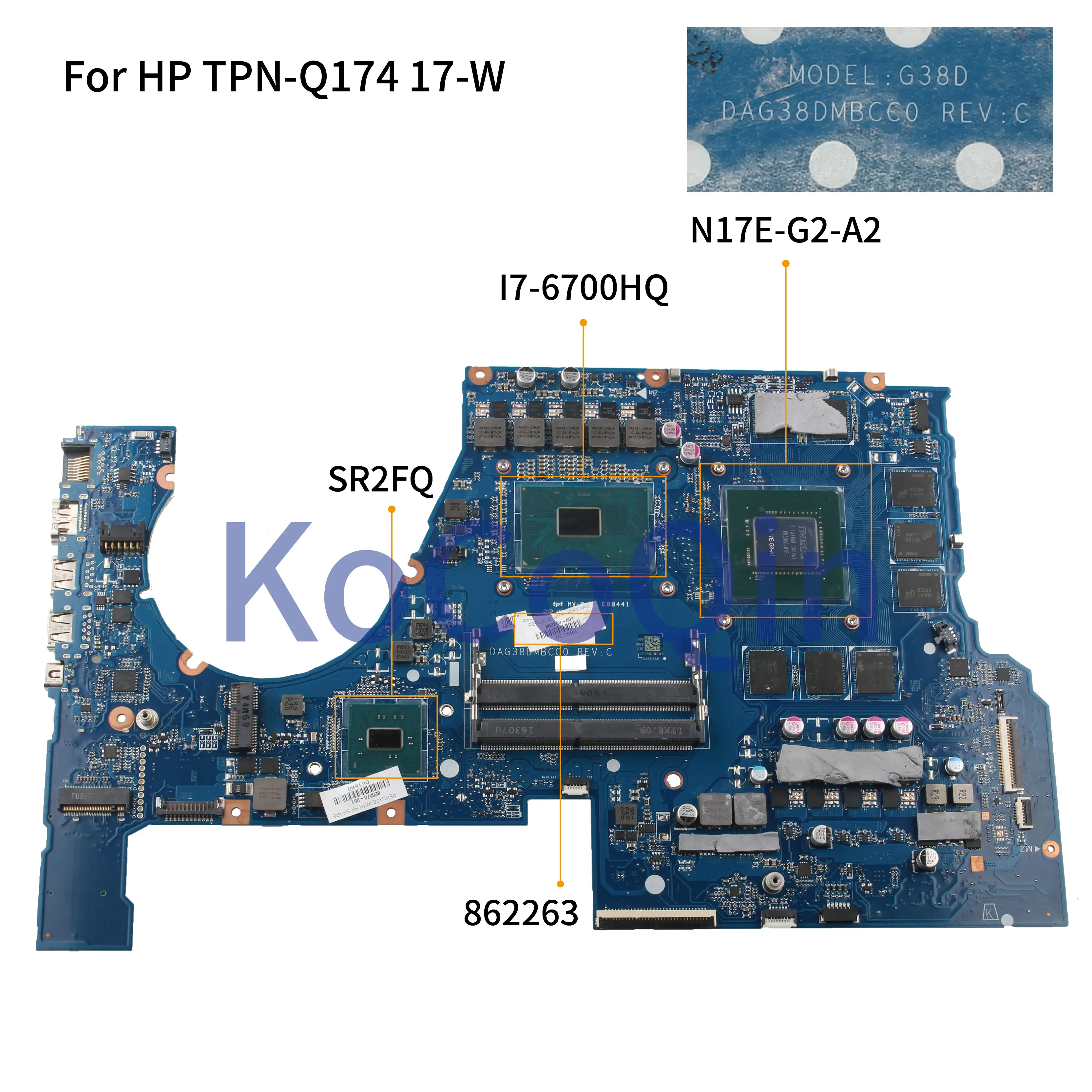 Comprar KoCoQin-placa base para ordenador portátil, para HP PRESSÁGIO 17-W 17-W151NR, I7-6700HQ, GTX 1070, G38D, DAG38DMBCC0, 862263-001, 862263-601
