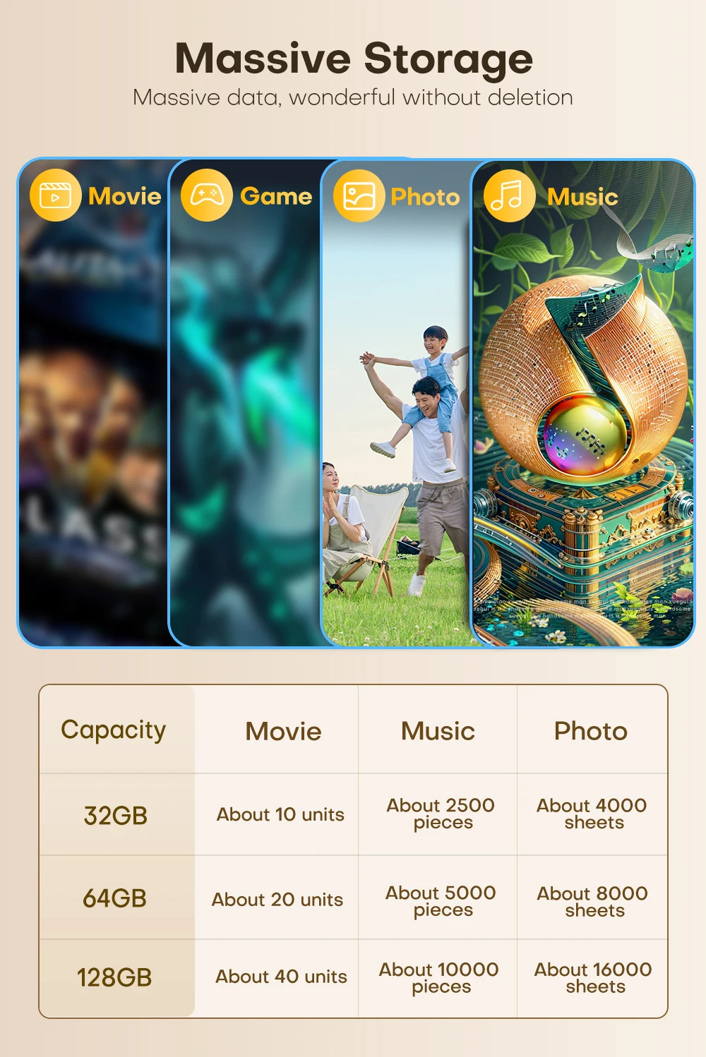 128 GB Aproximadamente 115 GB-119 GB.