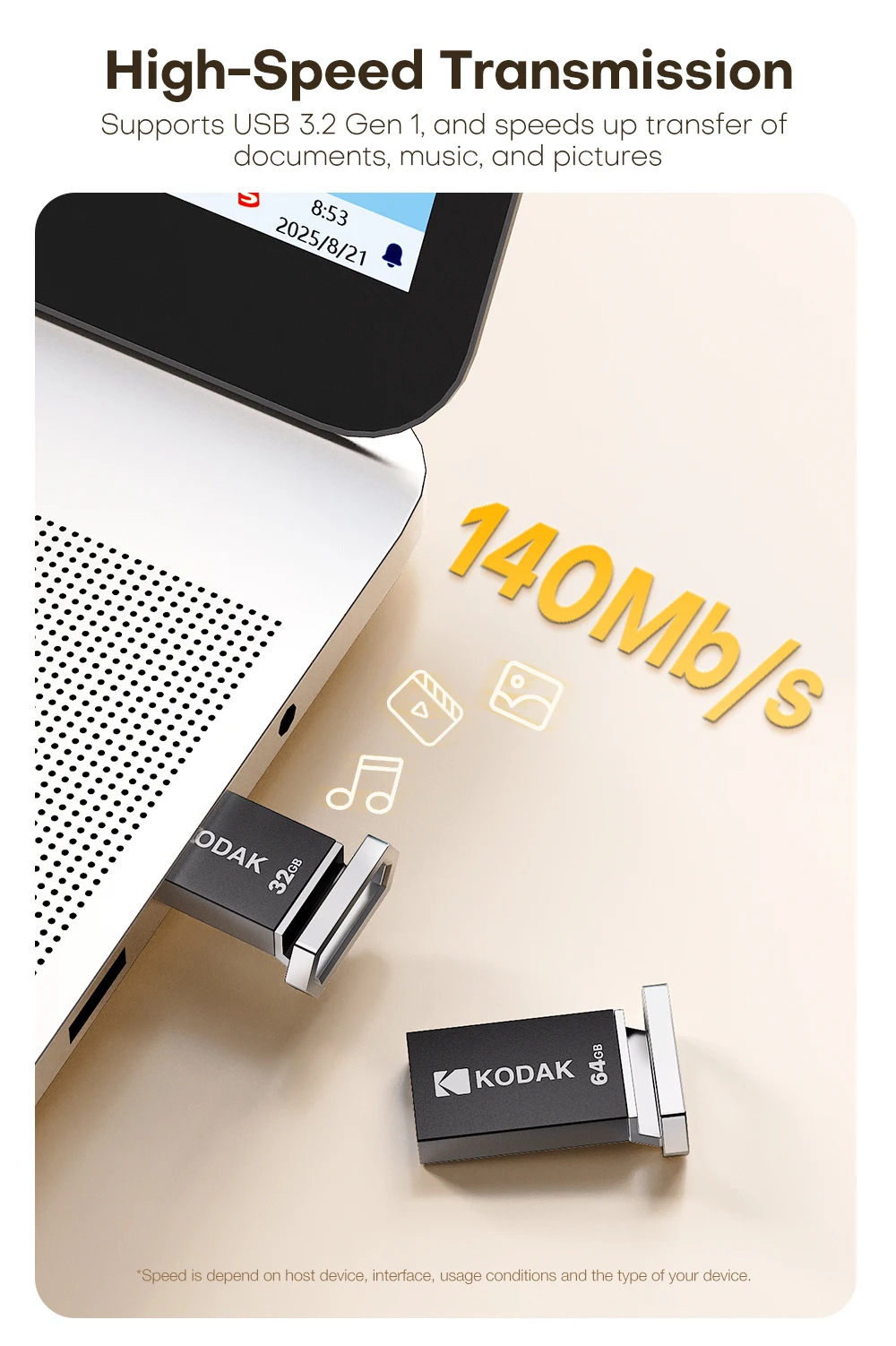 Consejos:La velocidad depende del dispositivo host, la interfaz, las condiciones de uso y el tipo de dispositivo.Datos del oficial de Kodak.Sólo para tu información.