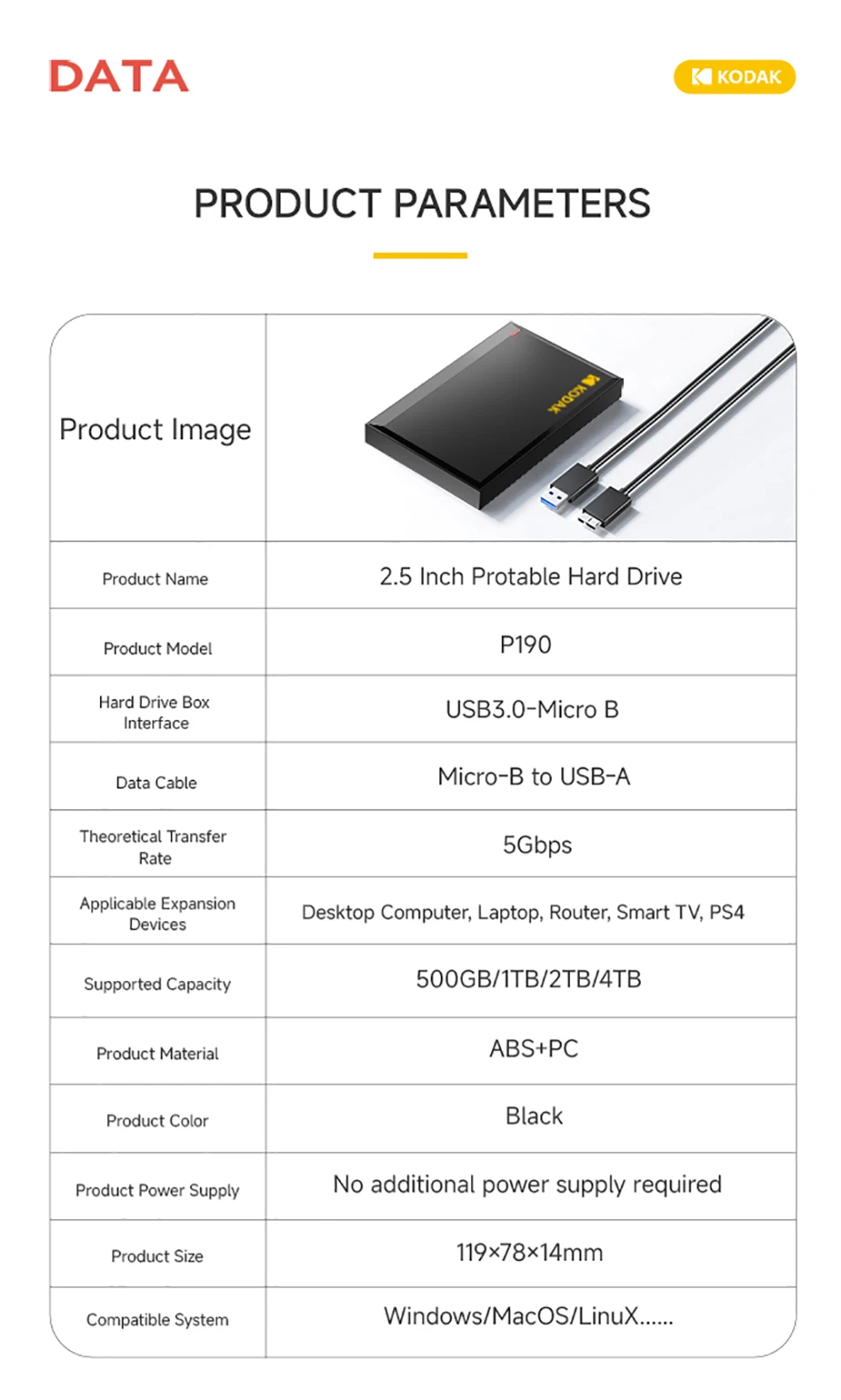 HDD portátil, cada chip de KODAK ha sido estrictamente probado por QC Data es seguro y protegido