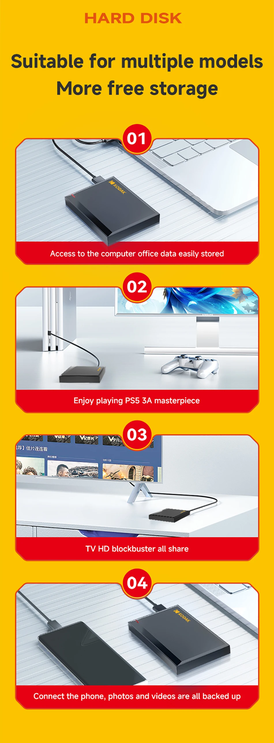 Comprar KODAK 2,5 pulgadas HDD 1TB portátil SSD 2TB disco duro 5Gbps USB3.0 HDD de alta velocidad para PS5 PS4 portátil de escritorio