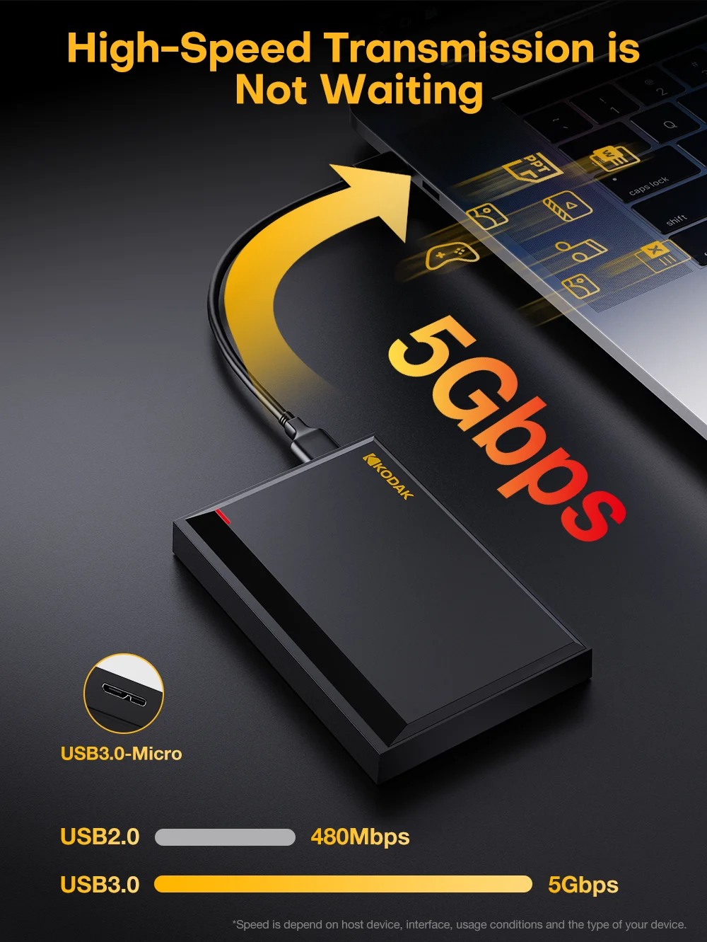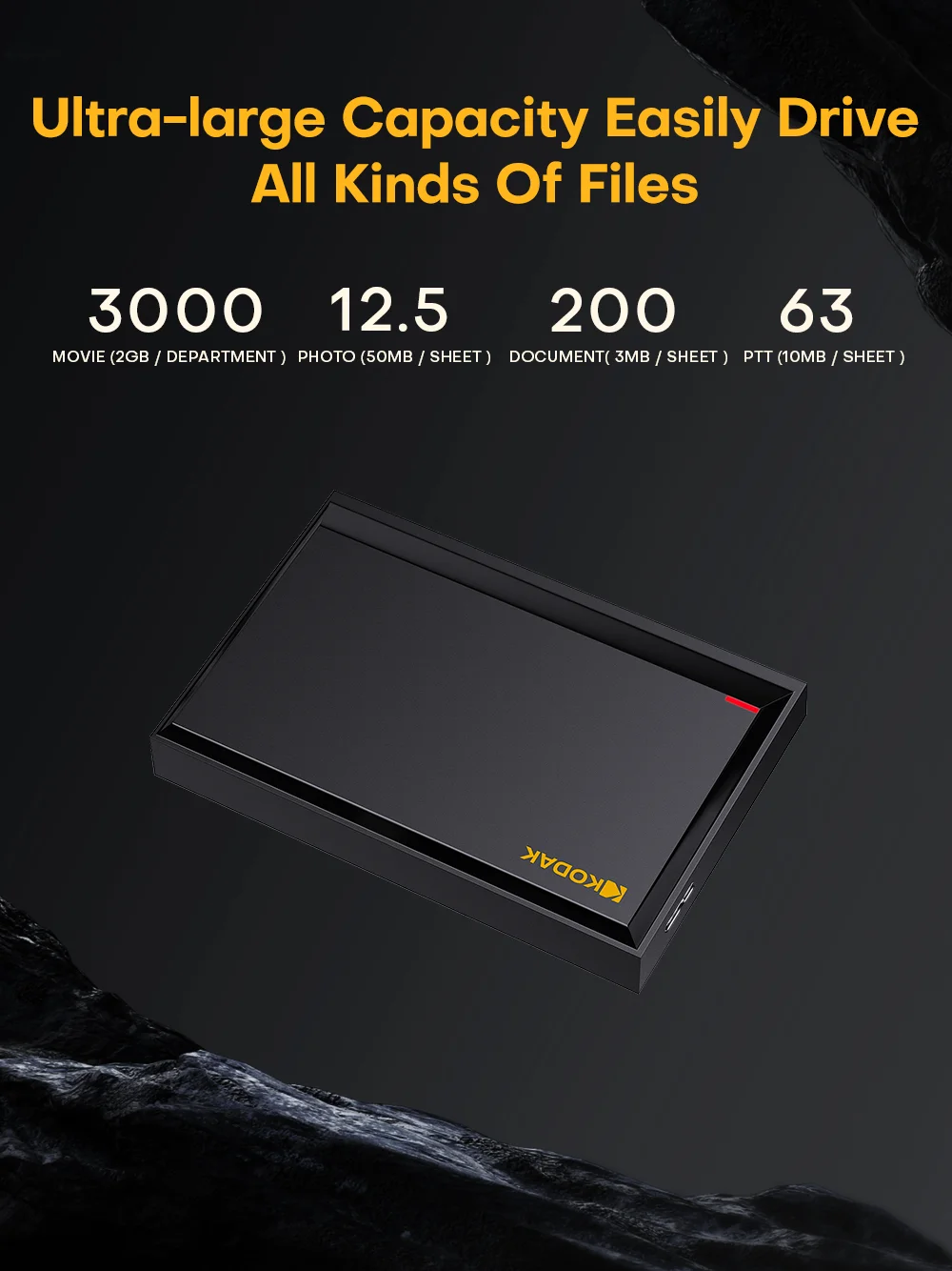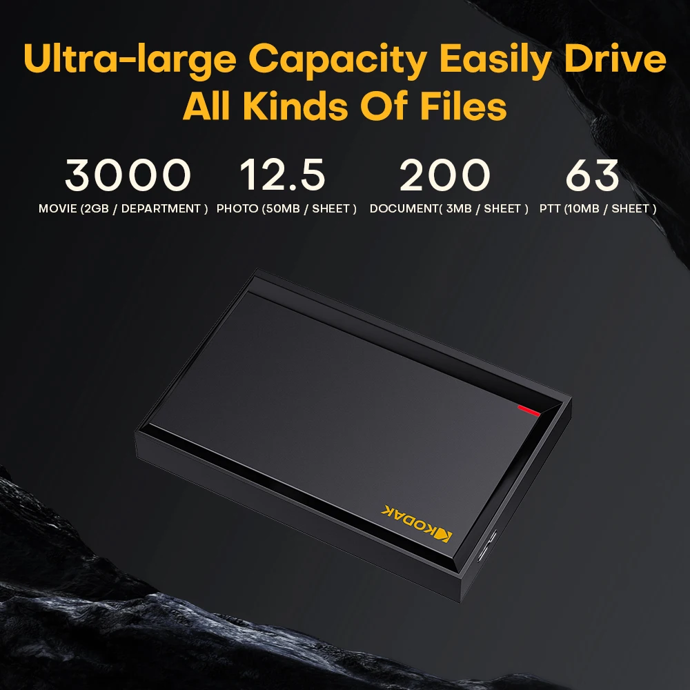 KODAK Disco duro externo portátil PHDD 500G/1TB Almacenamiento de alta velocidad para PC, computadora portátil, PS5, PS4 Juegos sin demoras y transfros de archivos grandes