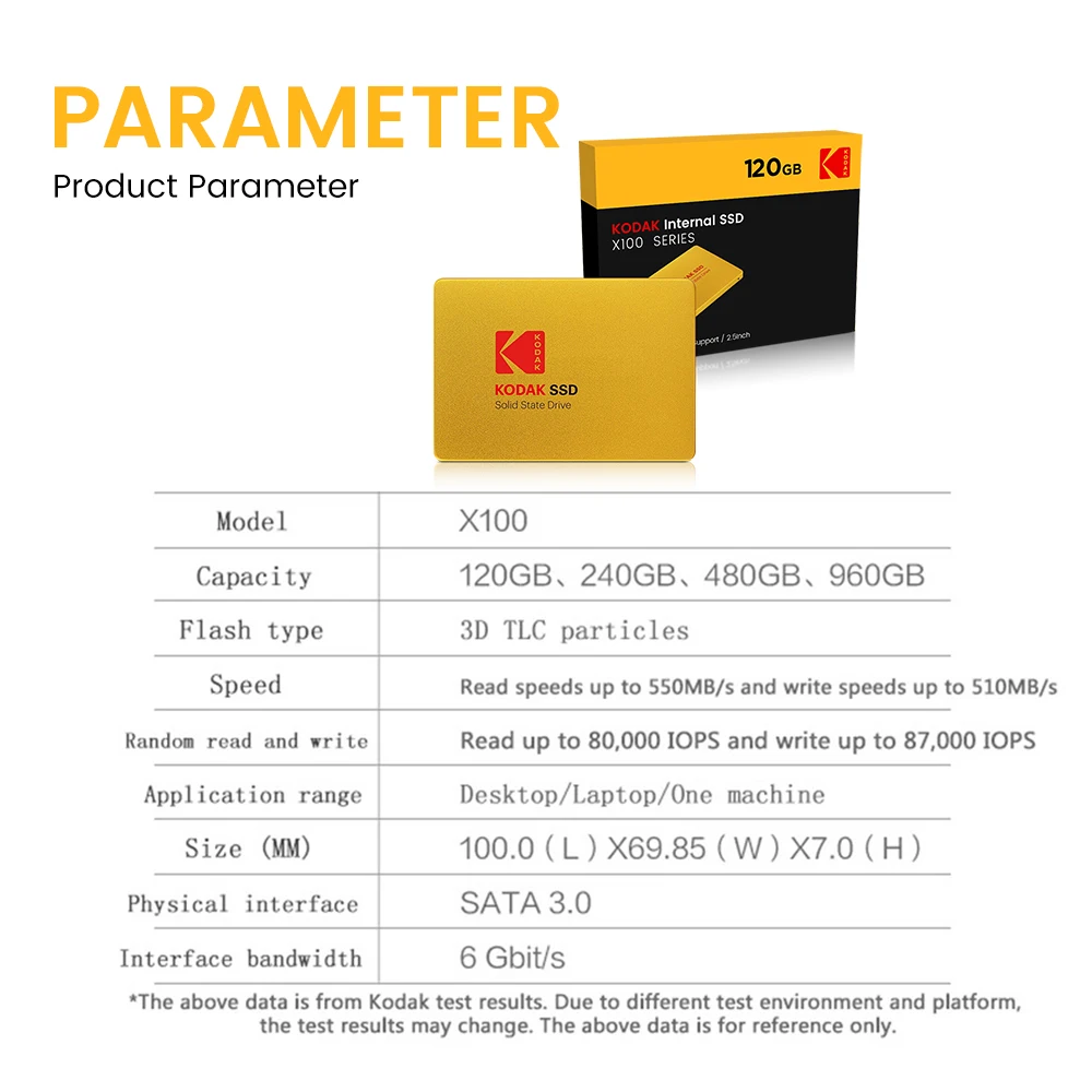 Comprar Kodak-disco duro X100 Sata3 Ssd, unidad interna de estado sólido Hdd de 120 pulgadas, 240GB, 480GB, 960GB, 2,5 GB, para PC de escritorio y portátil