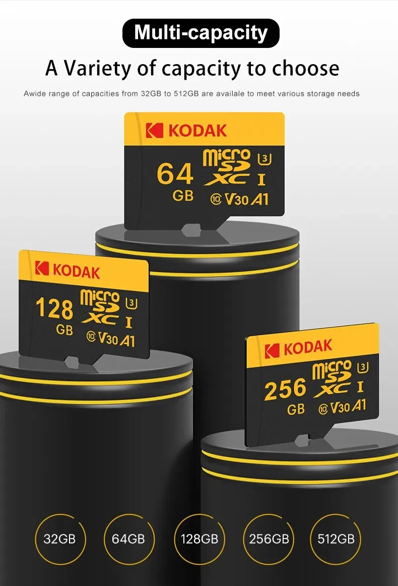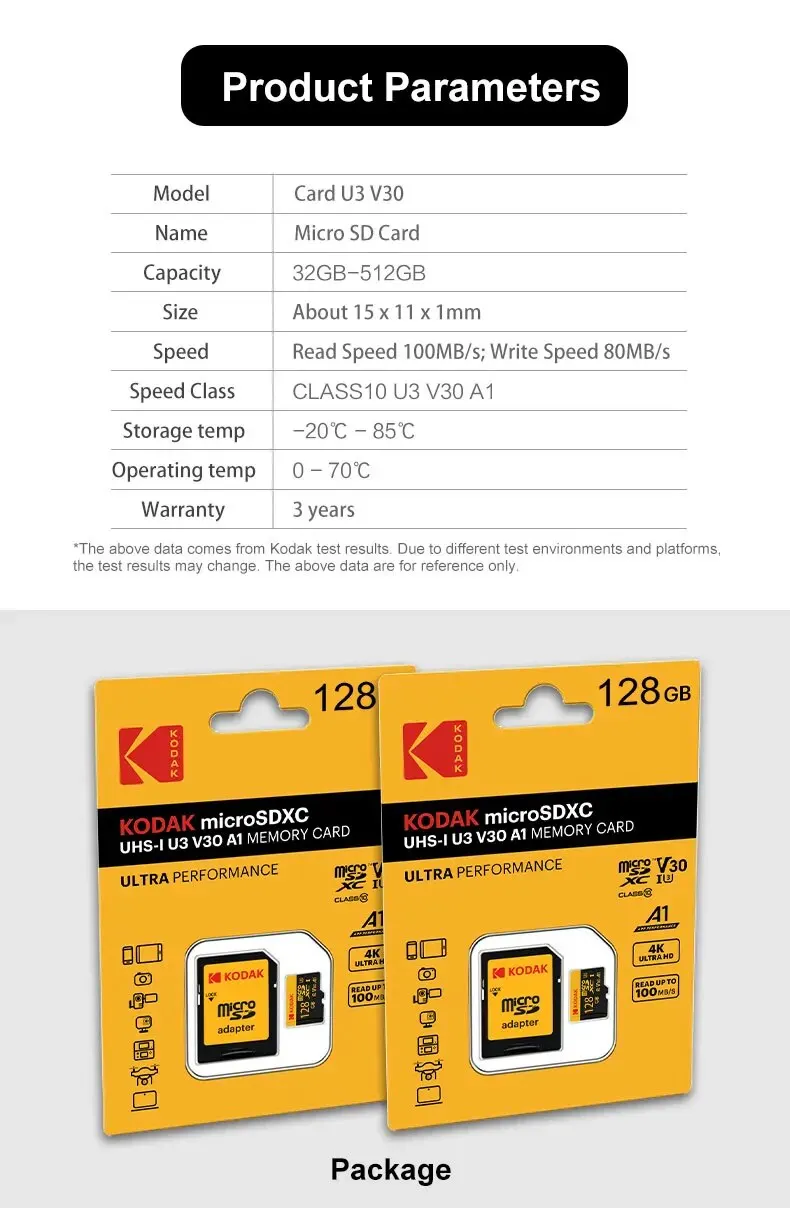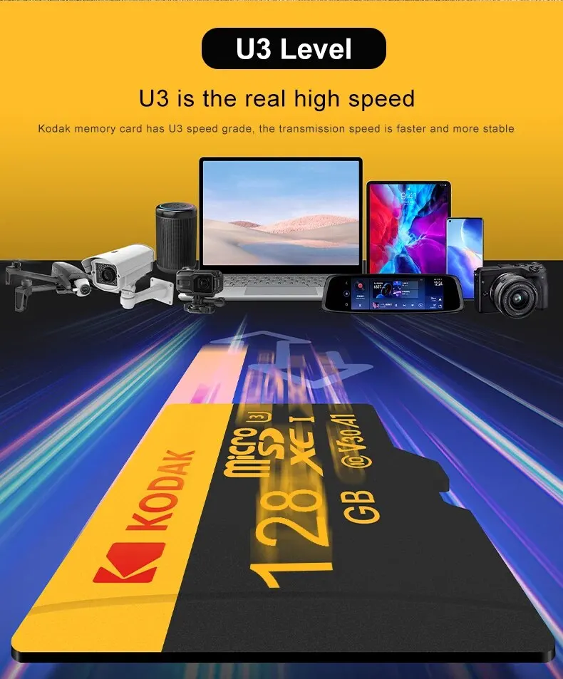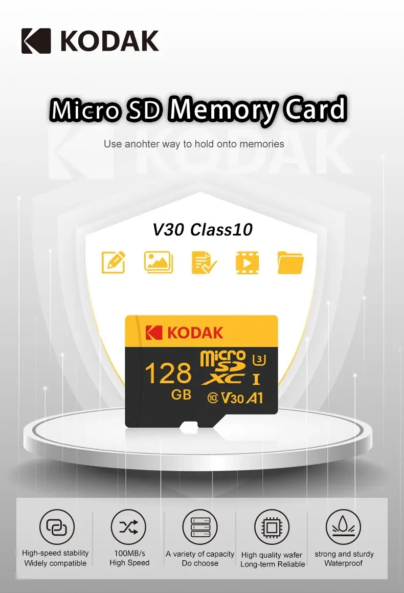 • High Storage Capacity :This Kodak micro card offers a massive storage capacity of 128GB, perfect for storing files, photos, videos, and more.