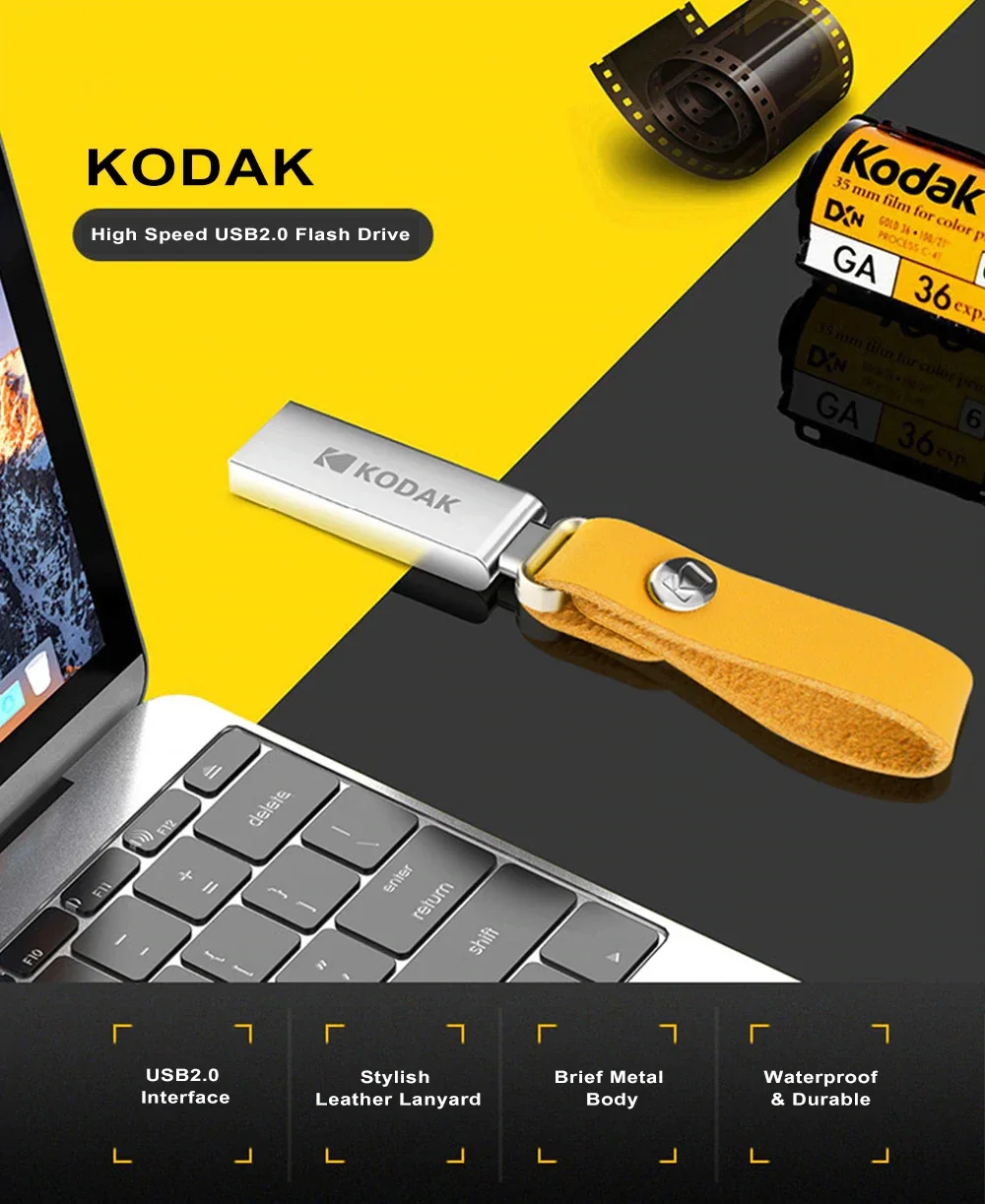 Comprar KODAK Pendrive USB2.0 unidad Flash H2testw 32GB 64GB 128GB disco U de Metal memoria impermeable Mini patio terrestre de cuero para llaves