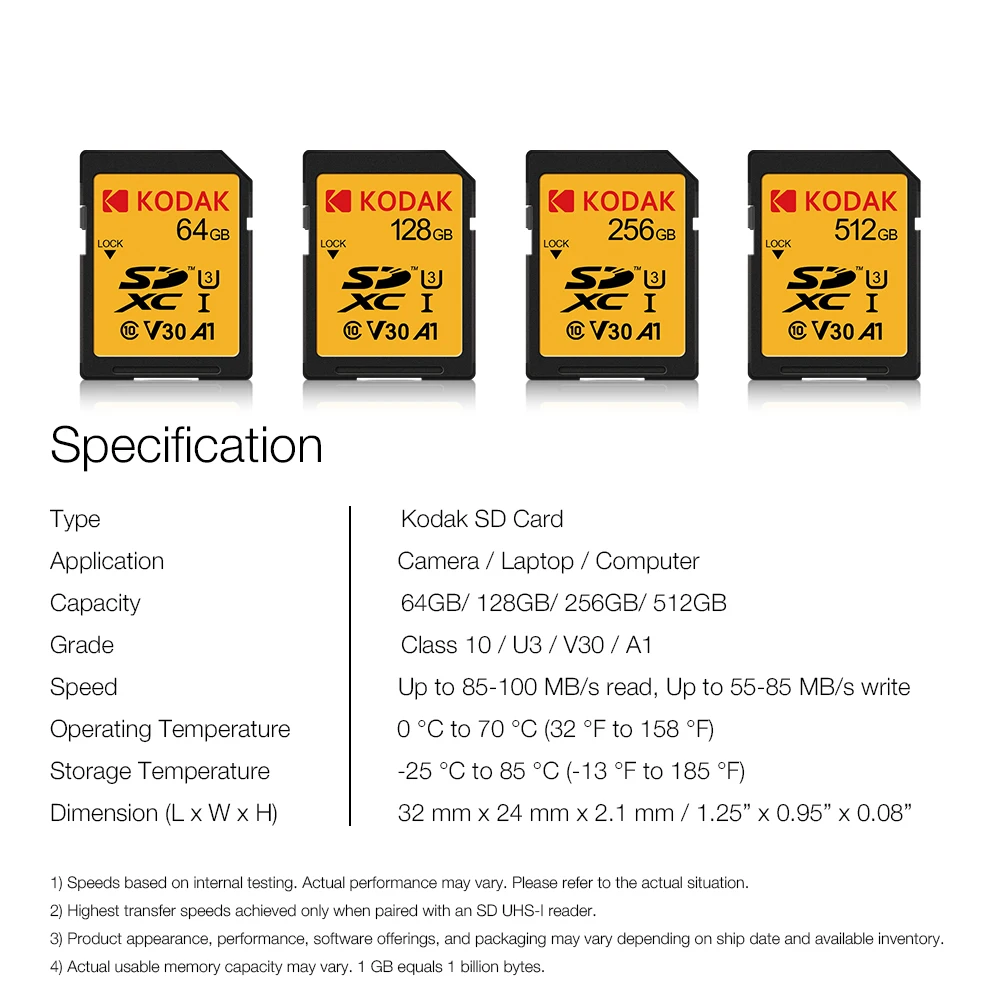 Comprar Kodak-tarjeta de memoria Extreme Pro, dispositivo SD de 32GB, 512GB, SDHC, 128GB, 64GB, 256GB, SDXC, cámara Clase 10, UHS-I, 100 MB/S, capacidad Real