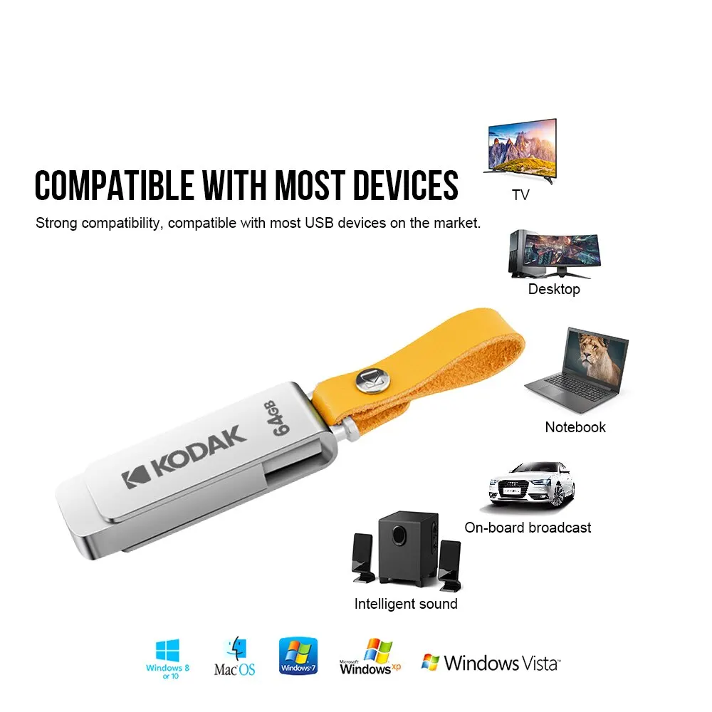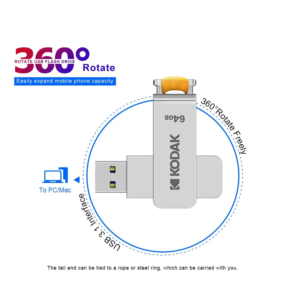 Comprar KODAK-unidad Flash USB 3,1 de Metal, Pen Drive de 64GB, 128GB, 256GB, personalidad creativa, regalo de música para coche, alta velocidad