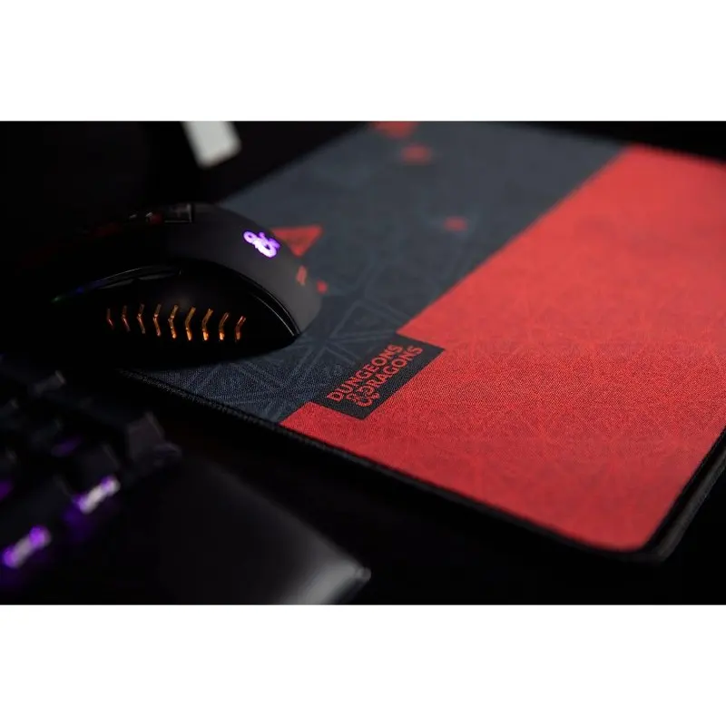 Konix alfombrilla gaming con diseño Dragones y Mazmorras en color negro y rojo, con un tamaño XXL de 32x27cm. Su superficie antideslizante evitrá movimientos involuntarios, y el material de tela suave permitirán controlar el ratón con precisión.