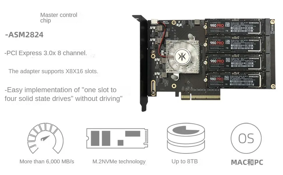 Comprar KONYEAD-tarjeta de expansión PCIE a M.2 NVME SSD 4 SOFT RAID ARRAY, controlador gratuito ASM2824