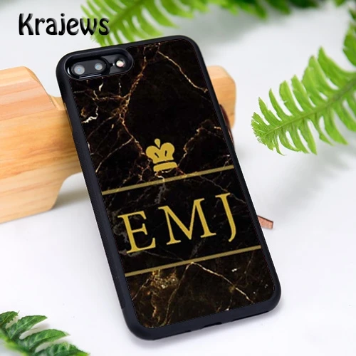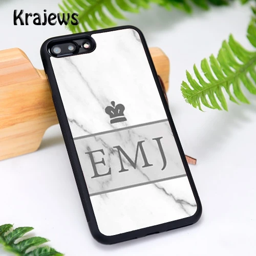 Krajews-funda de teléfono con corona inicial de mármol, nombre personalizado, para iPhone 17 Air 16 15 14 Plus 11 12 13 Pro Max
