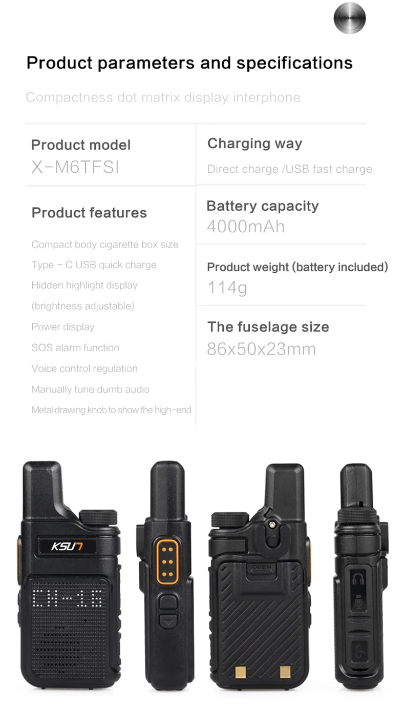 • Mini tamaño portátil :Compacto y fácil de llevar, este walkie talkie es perfecto para actividades al aire libre o situaciones de emergencia.