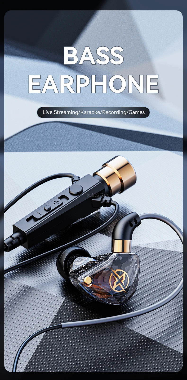 Auriculares con cable de 3,5mm con micrófono Bass HiFi Auriculares Vedio Streaming Karaoke Auriculares para teléfonos móviles Auriculares