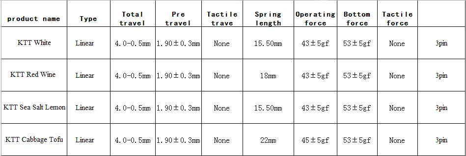 KTT Col Tofu interruptor lineal 45g MX para teclado mecánico, 80m, interruptor de fábrica Lubed Kanbai POM RGB, resorte largo de 3 pines