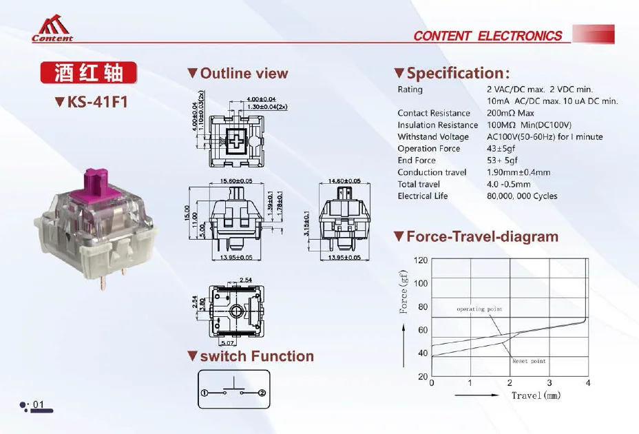 Comprar KTT-interruptor lineal de color rojo vino, accesorio para teclado mecánico, 53g, MX, 80m, Lubed de fábrica, rojo vino