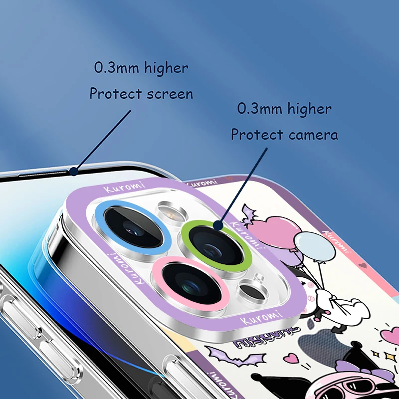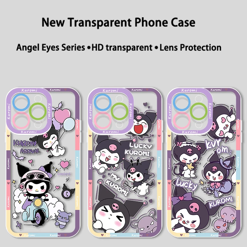 Kuromi-funda de teléfono transparente con Ojos de Ángel para Apple, carcasa bonita de dibujos animados para iPhone 15, 14, 13, 12, 11, XS, XR, X Pro MAX, 8, 7 Plus, SE