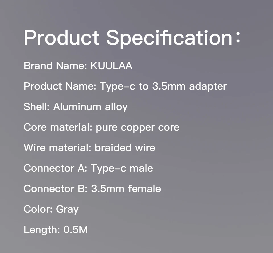 Comprar KUULAA-cable de auriculares tipo c a jack de 3,5mm, Adaptador de audio usb c a 3,5 Aux para huawei mate 20 P30 pro xiaomi mi6 8 9 SE