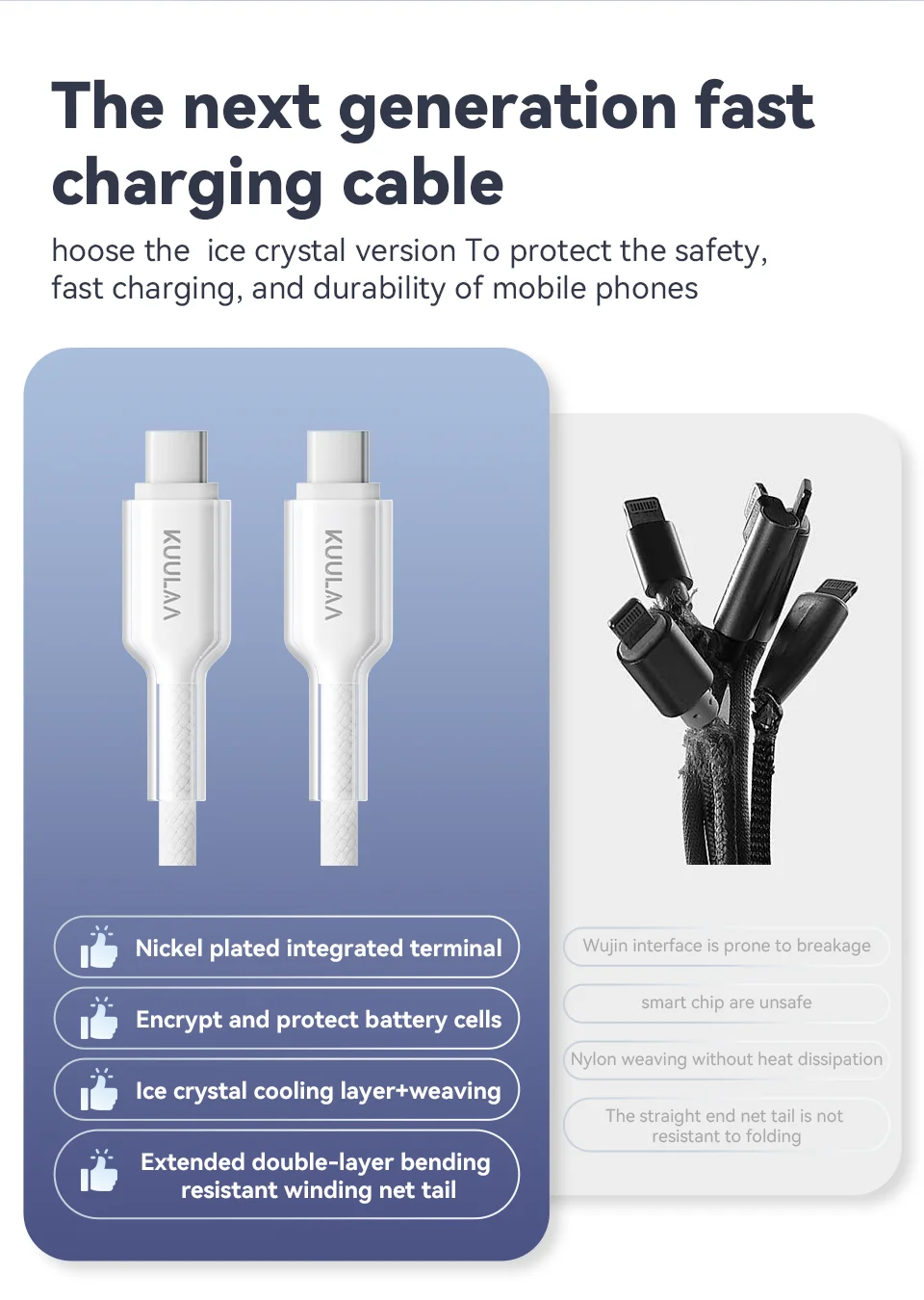Los cables funcionan, el trenzado es bueno, pero en el teléfono dice carga súper rápida, mientras que con otros de una empresa diferente dice carga súper rápida 2.0. Así que no permiten 60V 40 como máximo.