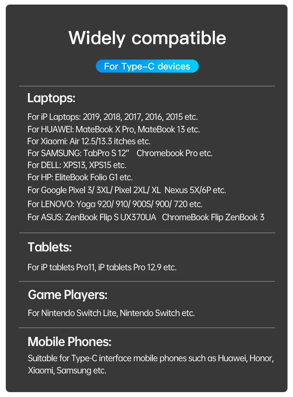 Admite carga flash para teléfonos móviles de HUAWEI, Xiaomi, Samsung,Smartisan, etc.