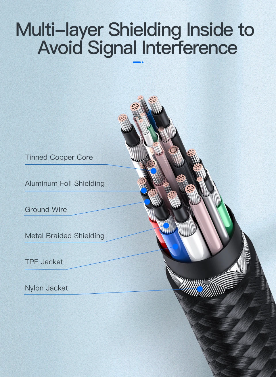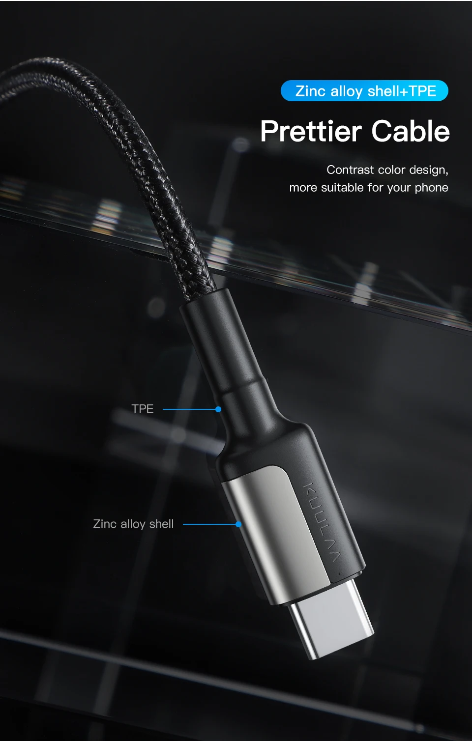 Material: carcasa de aleación de zinc + TPE + alambre trenzado de nailon alto