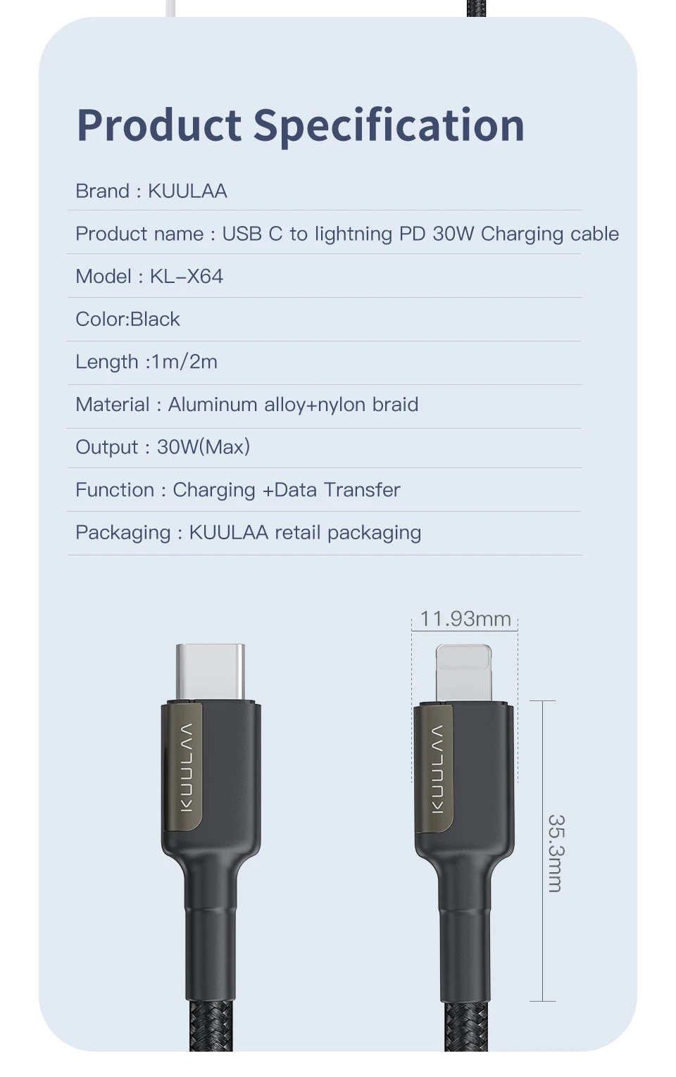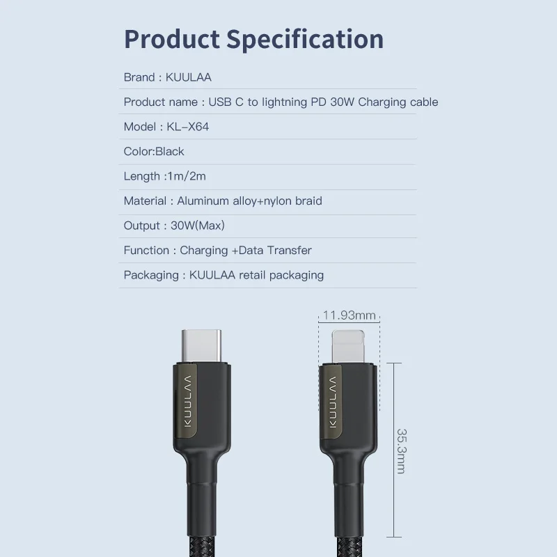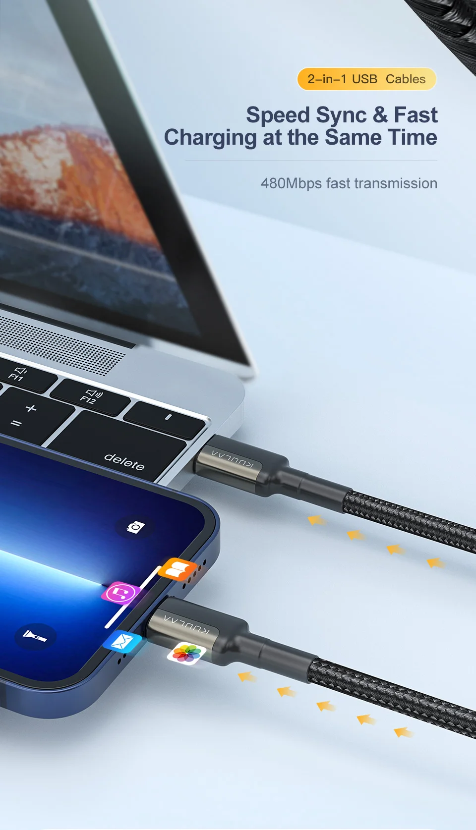 Comprar KUULAA-Cable USB tipo C de carga rápida para iPhone, Cable tipo C a lightning para iPhone 14, 13 Pro Max, 12 mini pro max, 30W