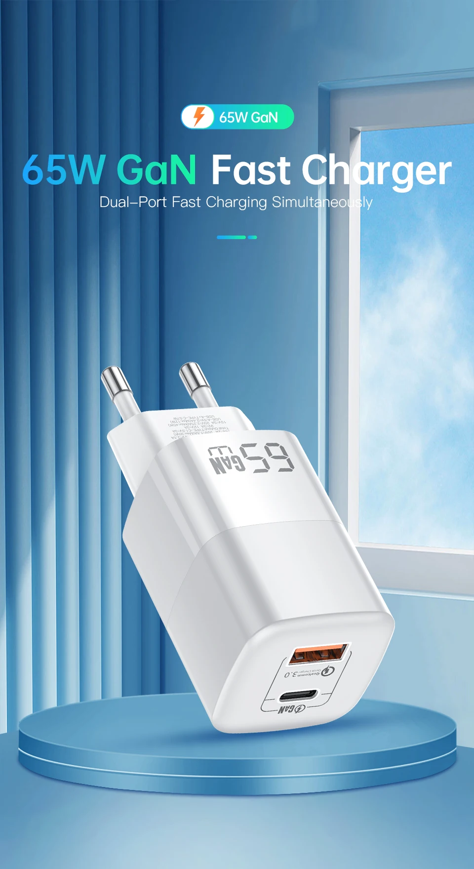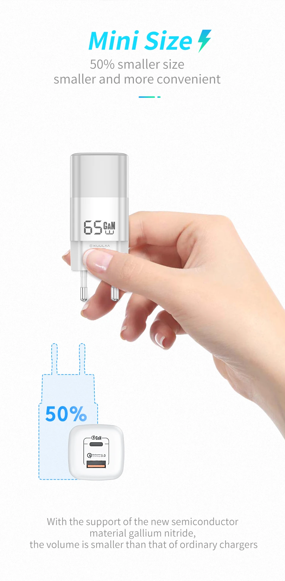 Comprar KUULAA Cargador Rápido GaN para Teléfono o Portátil, Dispositivo de Carga Rápida USB PD 4.0 3.0 Tipo C, Cargador para iPhone 14 13 12 Pro Max, 65W