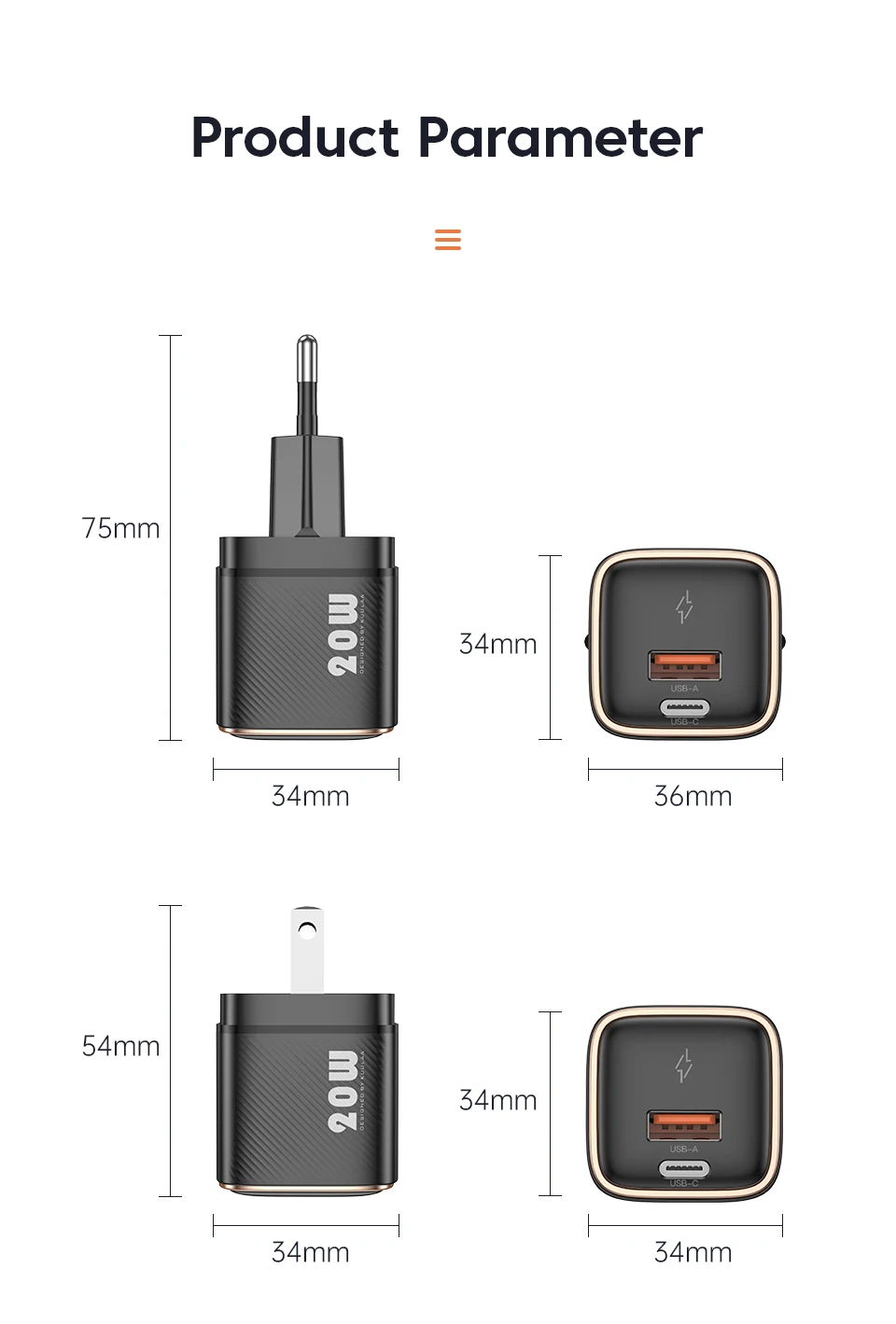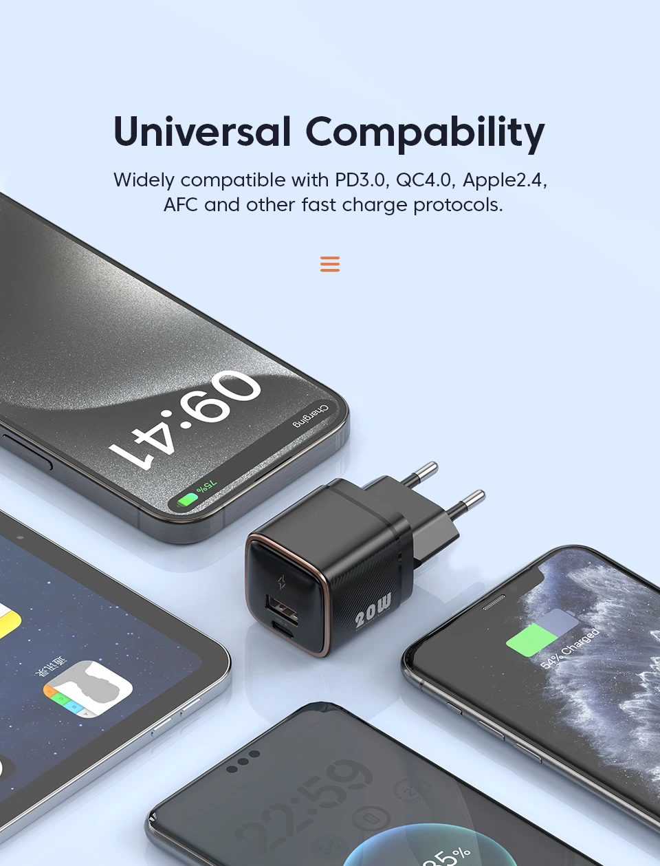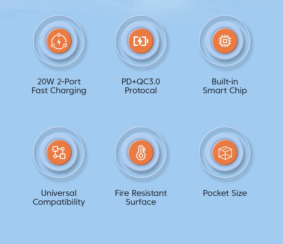 Ampliamente compatible con PD3.0, QC4.0, para iPhone 2.4 AFC y otros protocolos de carga rápida.