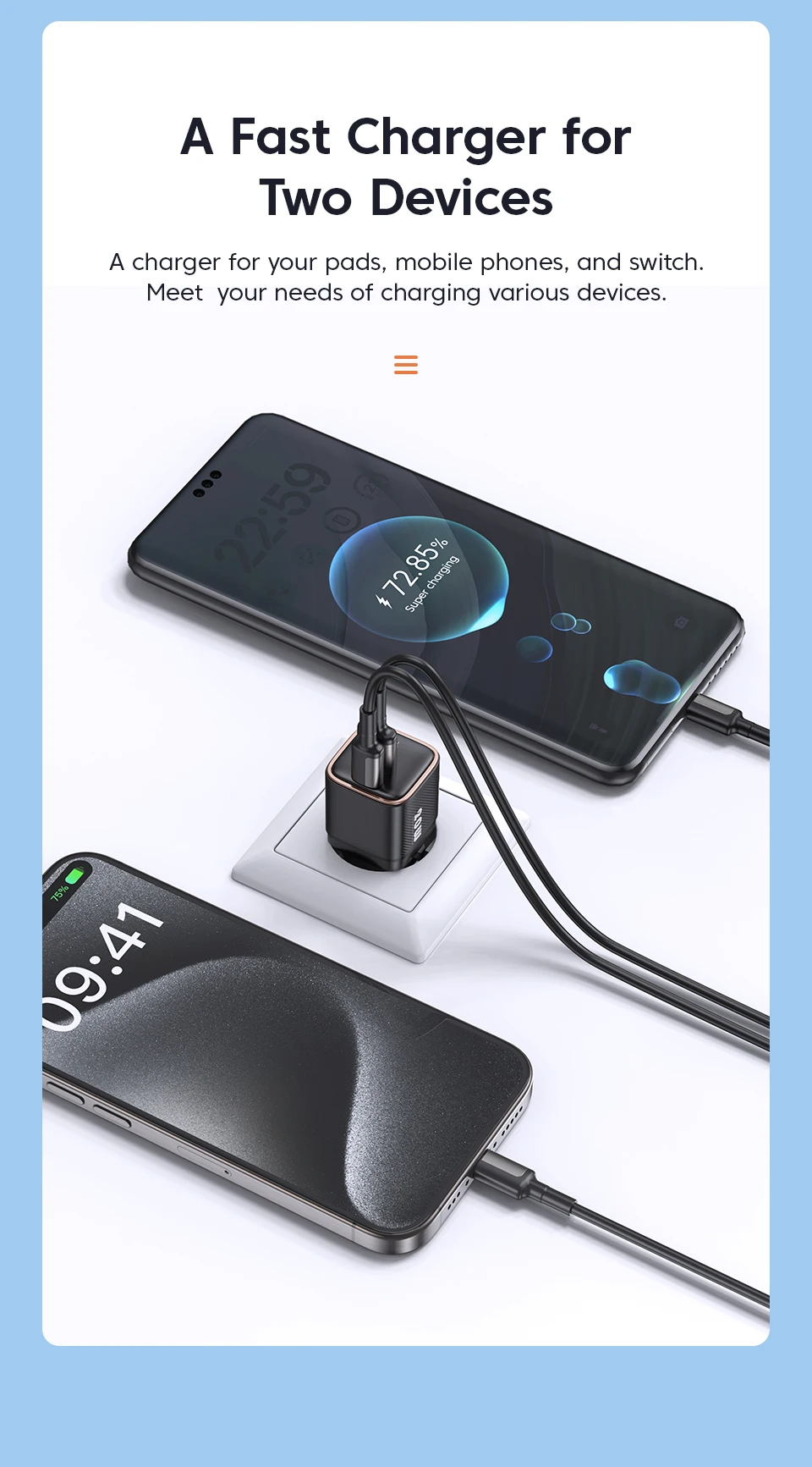 Un cargador para tus portátiles, pads, teléfonos móviles, interruptor.Satisfaga todas sus necesidades de carga de varios dispositivos.