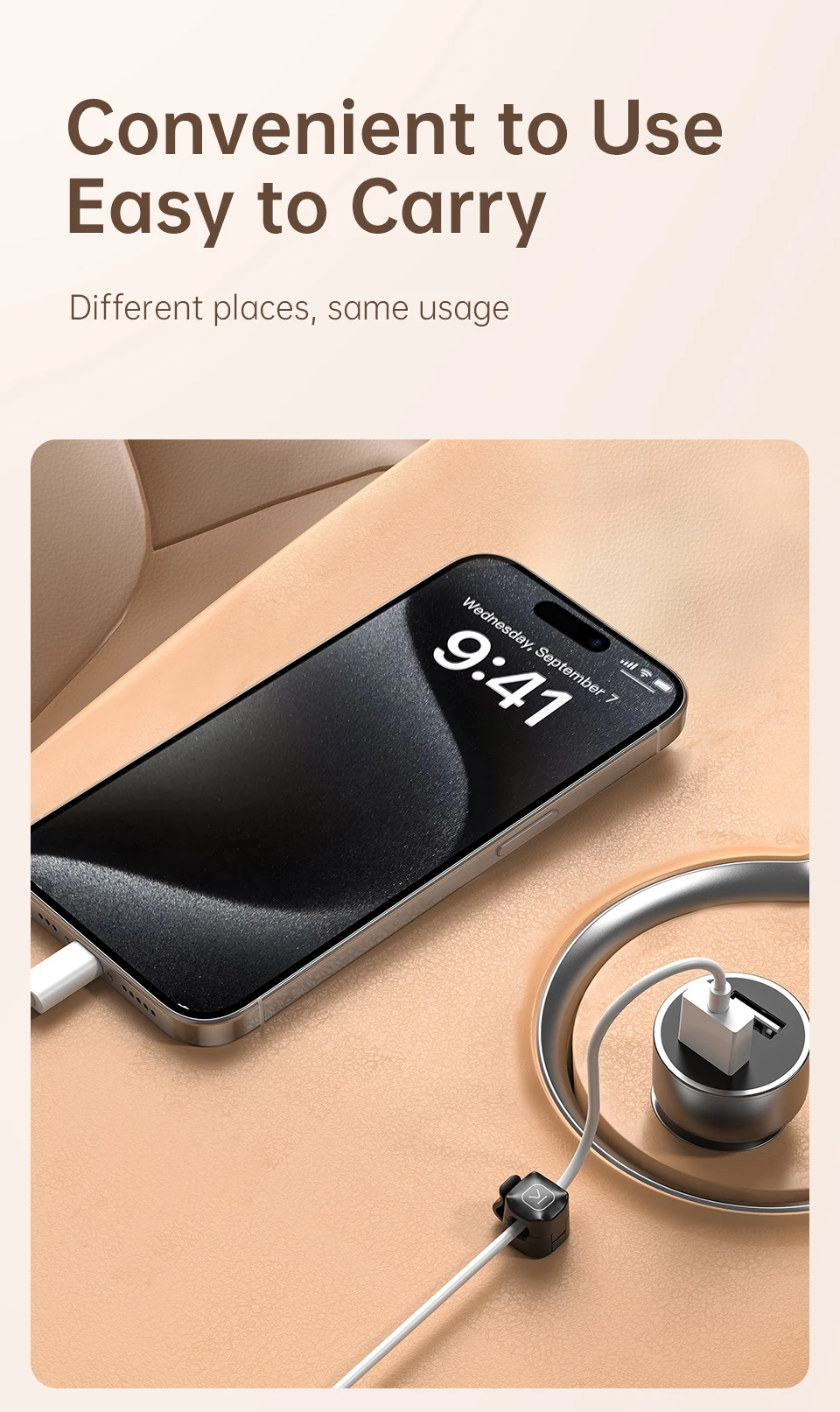 Diseño racionalizado de agujeros. Puede extraer el cable de datos a voluntad.