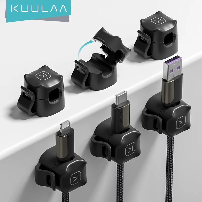 Comprar KUULAA-Clips para cables, soporte ajustable y suave para debajo del escritorio, organizador de cables