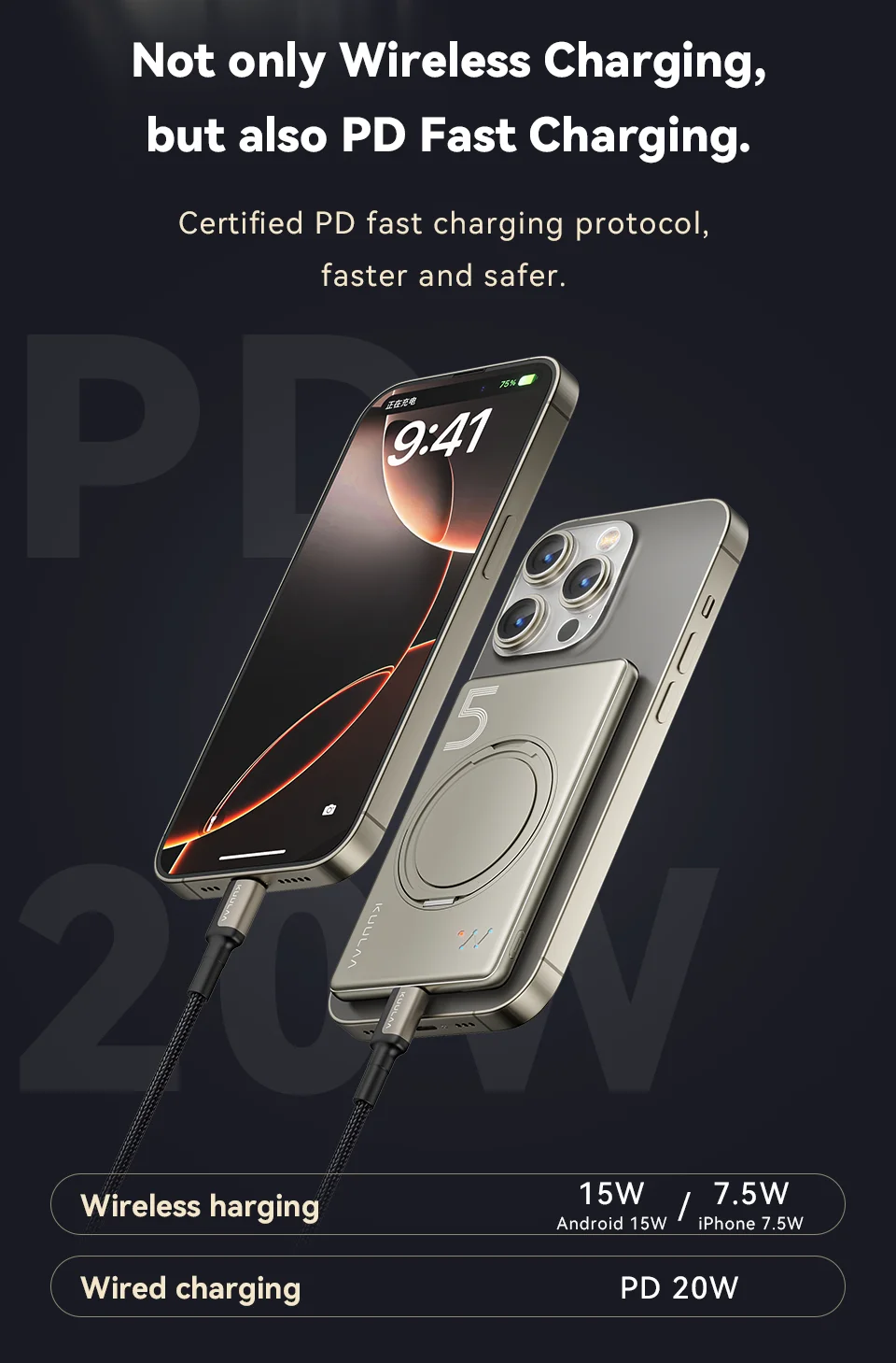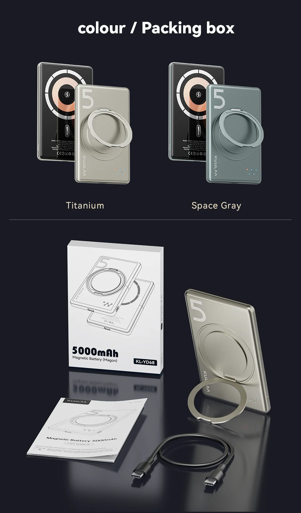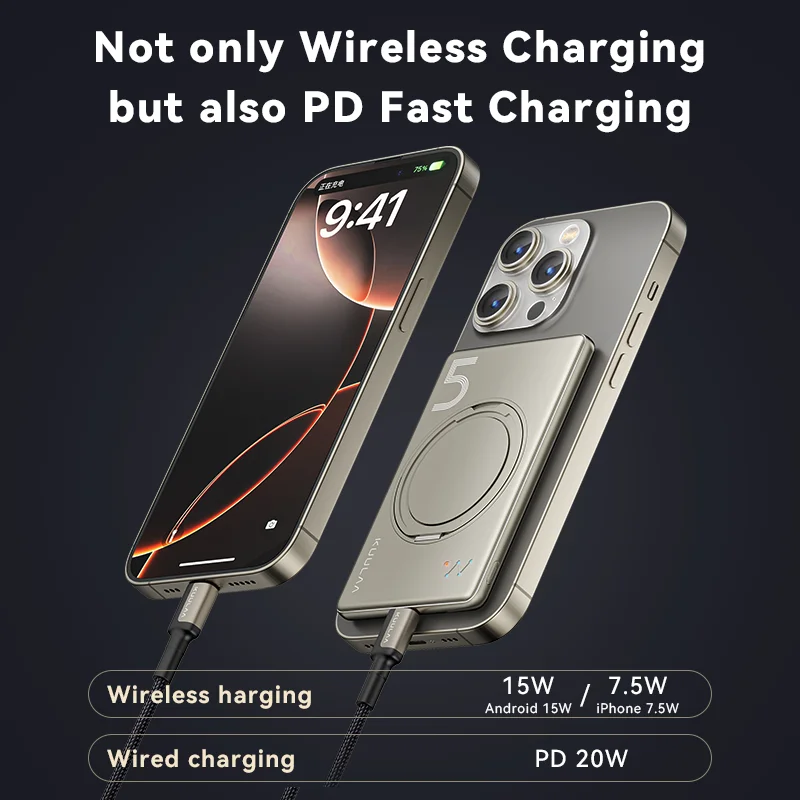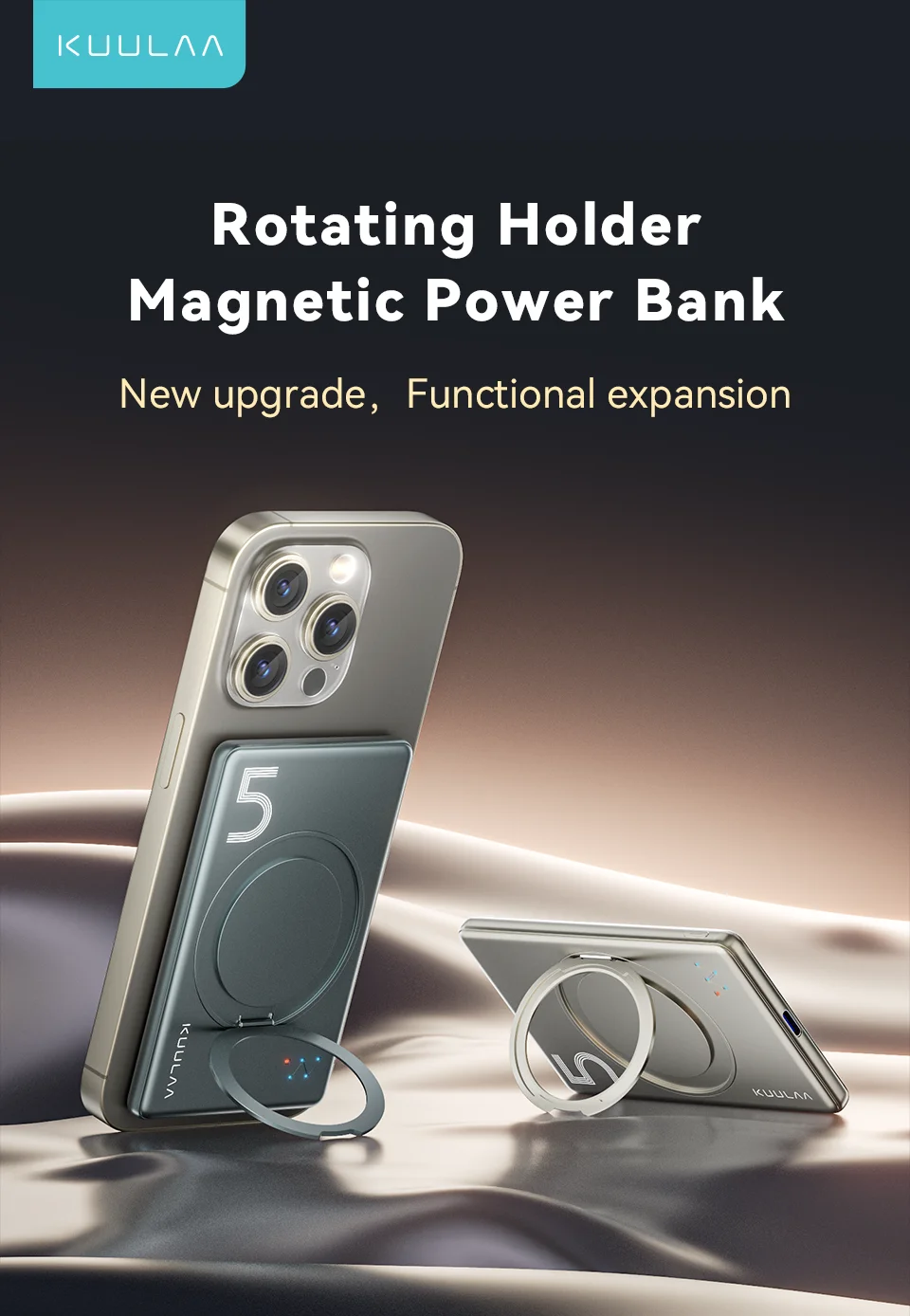 Comprar KUULAA Magsafe Power Bank 5000mAh batería magnética con soporte batería externa carga rápida para iPhone 16 15 14 13 PowerBank