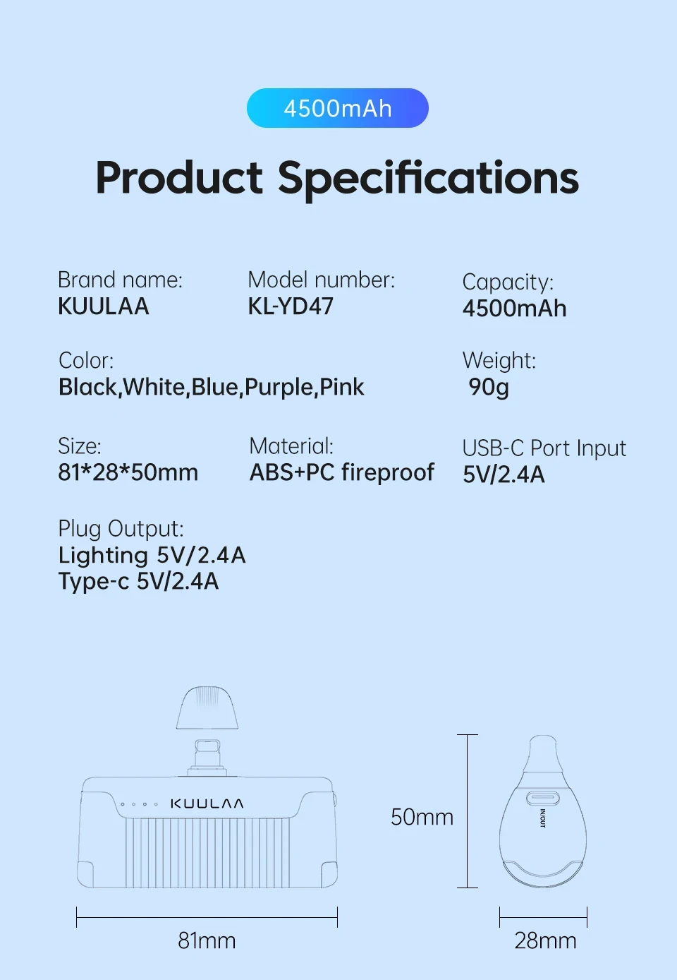 Comprar KUULAA-Mini banco de energía de 4500mAh, cargador portátil para iPhone 15, 14, 13, 12 Pro Max, batería externa para Samsung/Xiaomi