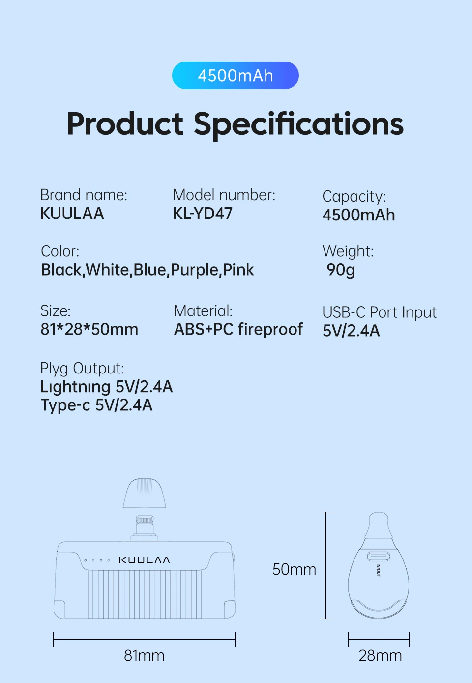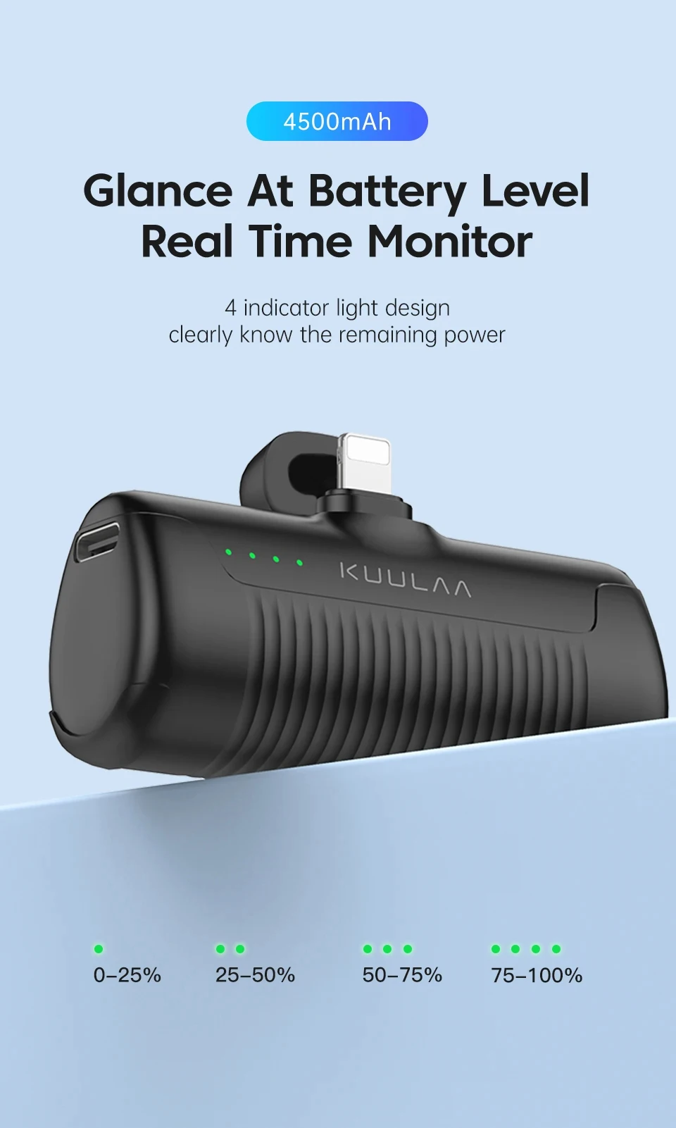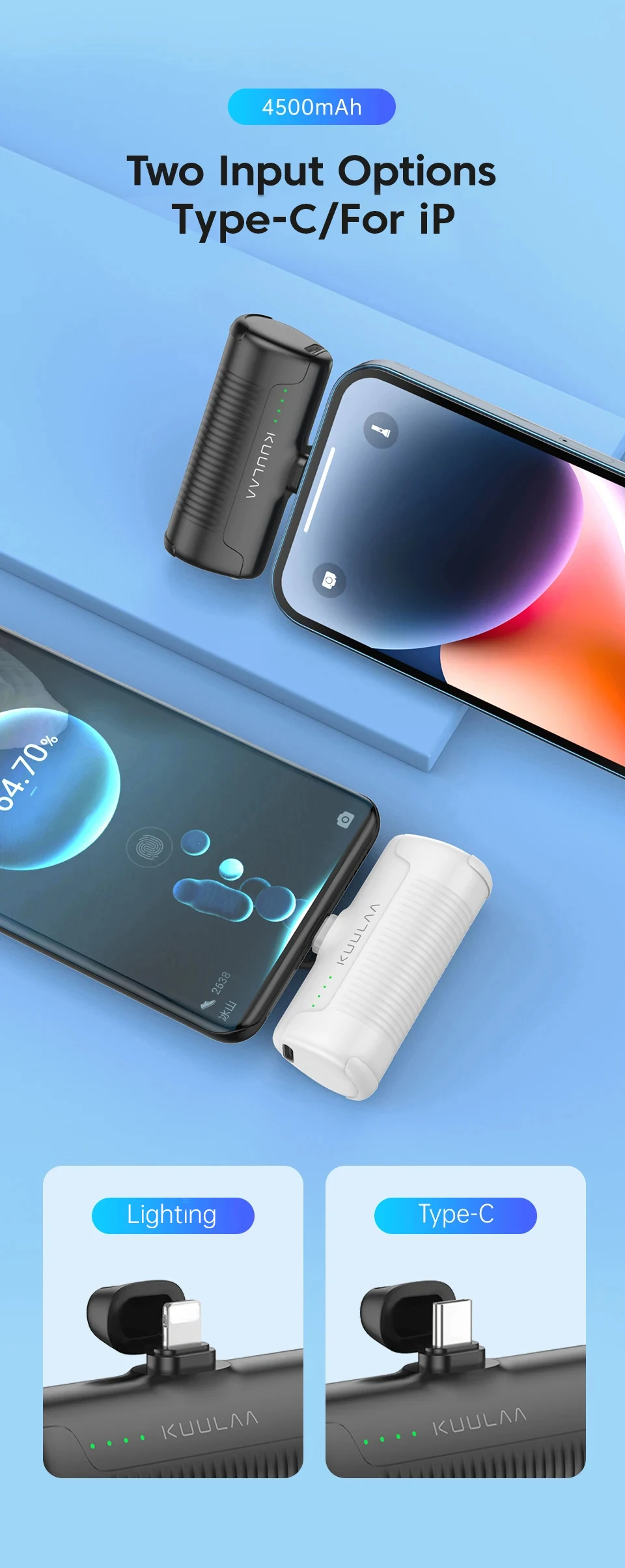 Comprar KUULAA Mini Power Bank 4500mAh - Cargador portátil para iPhone 16 15 14 13 Pro Max y Samsung/Xiaomi - Batería externa PowerBank