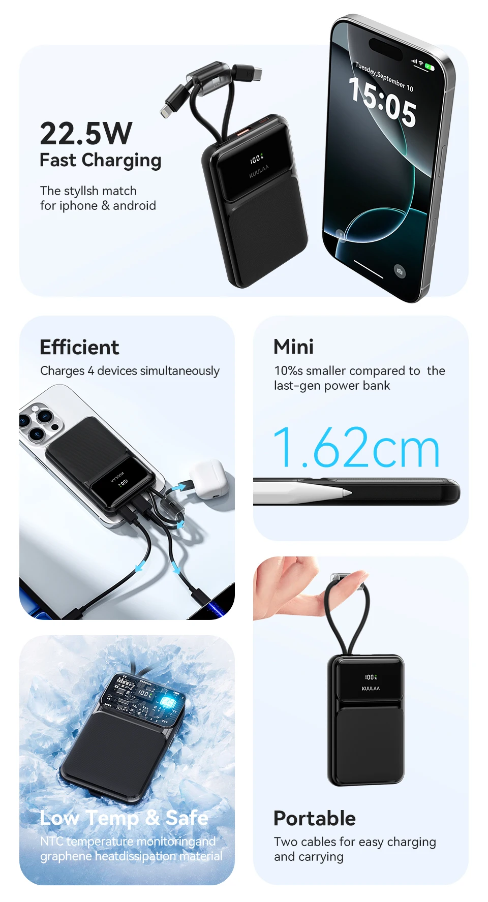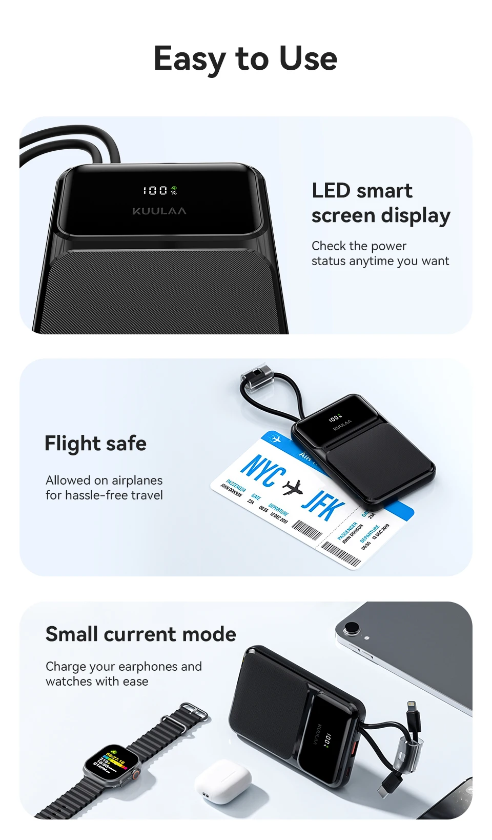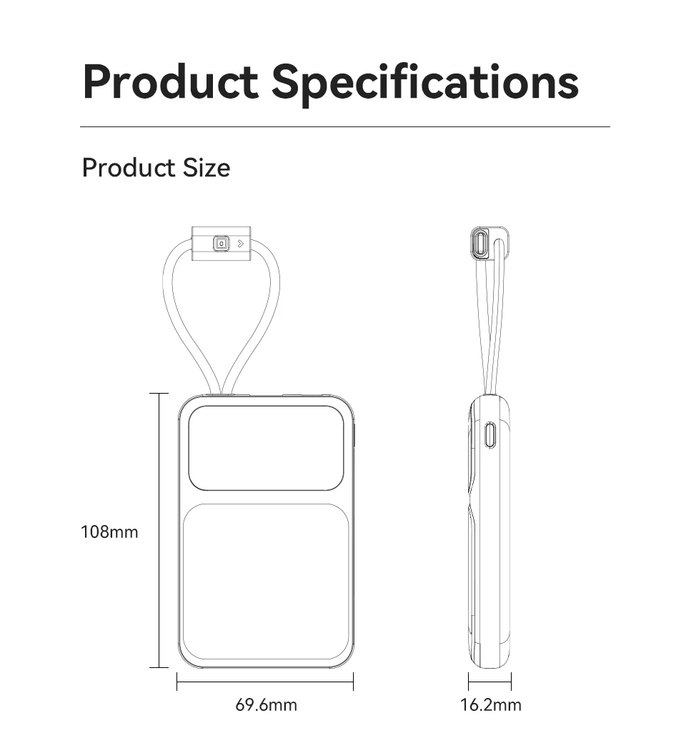 Batería externa muy práctica, compacta y con dos cables. Funciona perfectamente, carga rápidamente y tiene entrega rápida.