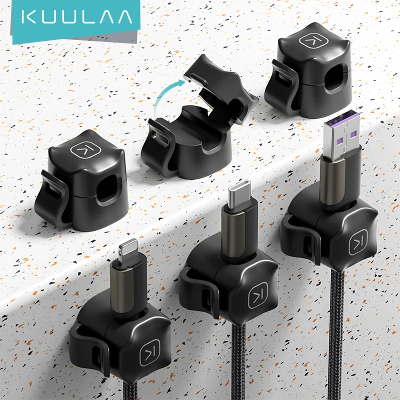 Comprar KUULAA-Soporte adhesivo para cables, organizador para el hogar, oficina, bajo gestión de escritorio, 6 paquetes
