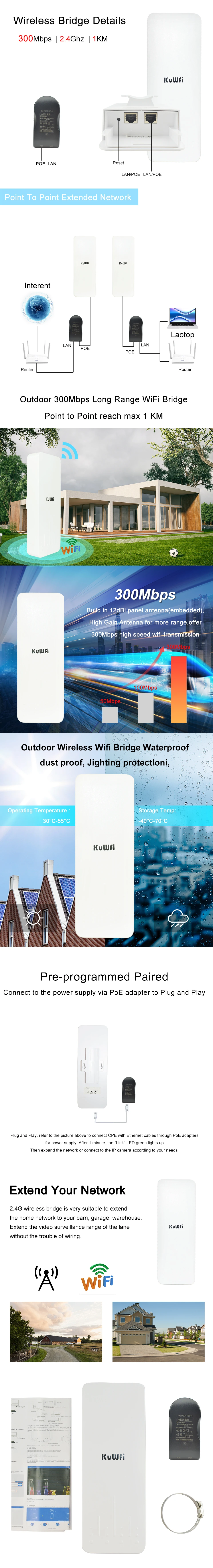 Comprar KuWFi 2,4 Ghz enrutador exterior inalámbrico AP enrutador remoto repetidor WIFI puente exterior WiFi punto de acceso ap1KM enrutador punto a punto