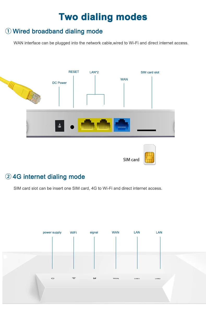 El enrutador 4G CPE funciona con 4G a WiFi, 4G a LAN, modo AP, antena incorporada de 5dBi, la velocidad de descarga es de hasta 150 Mbps, la velocidad de carga es de hasta 50 Mbps y la velocidad de transmisión inalámbrica es de 300 Mbps.Reduce eficazmente la interferencia de cocanal y amplía el rango de transmisión inalámbrica.