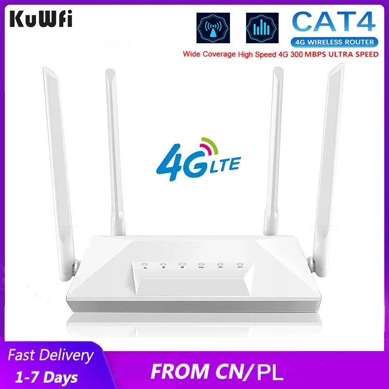 Comprar KuWFi 300Mbps 4G CAT4 LTE enrutador inalámbrico con ranura para tarjeta SIM Rj45 enrutador WiFi módem puerto LAN 4 antenas externas adaptadores WIFI