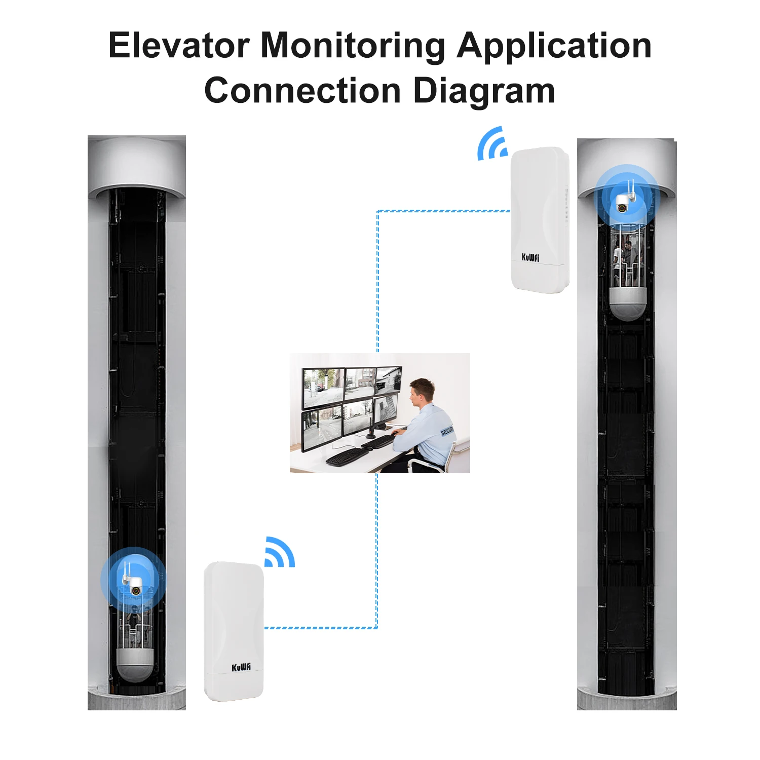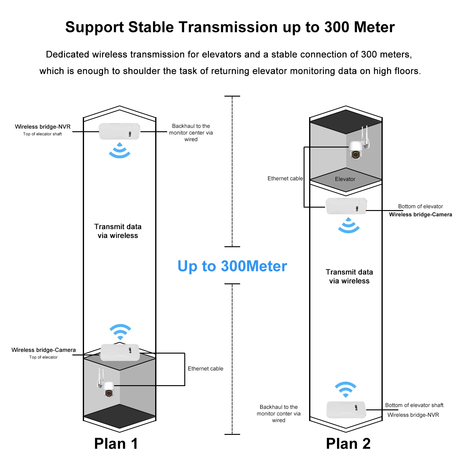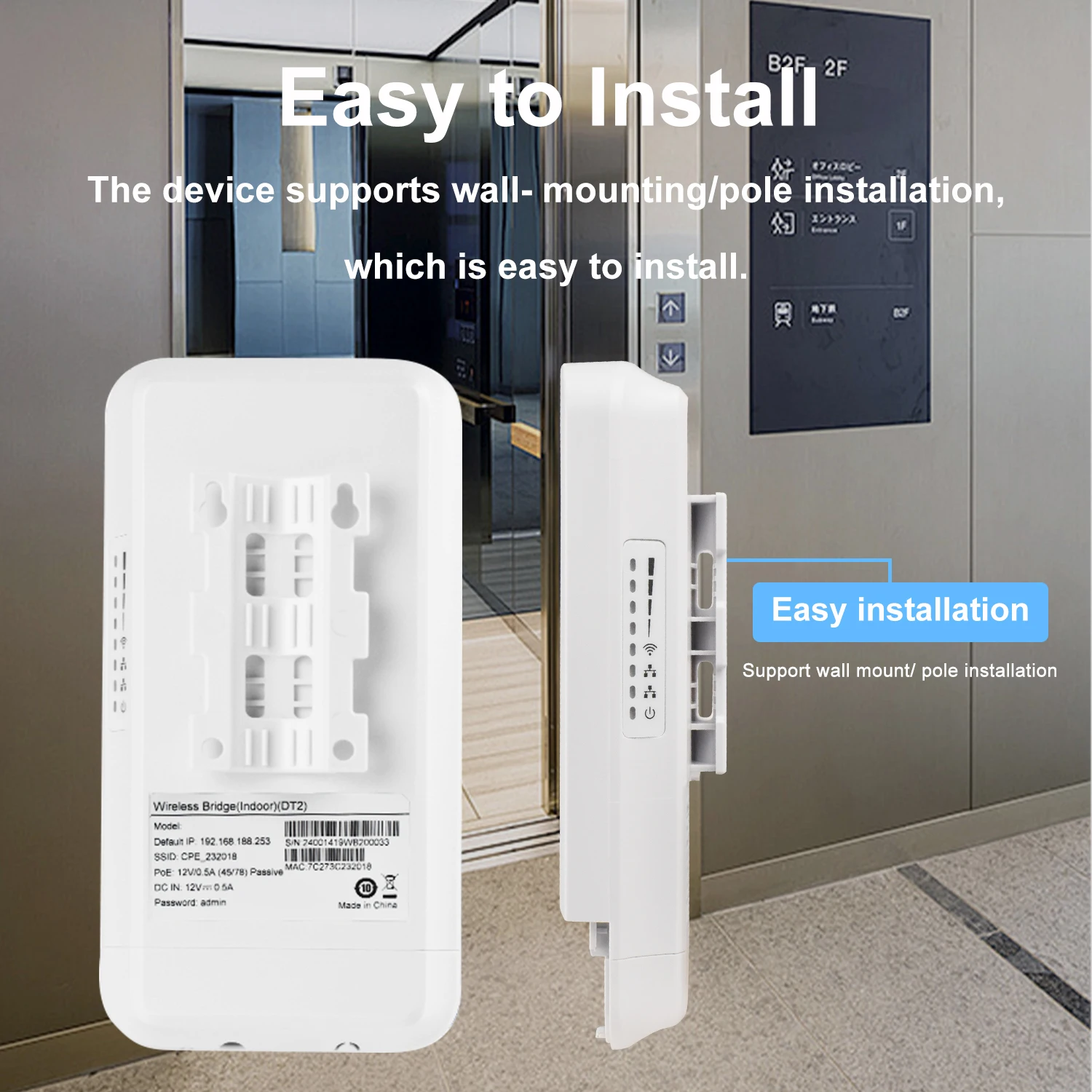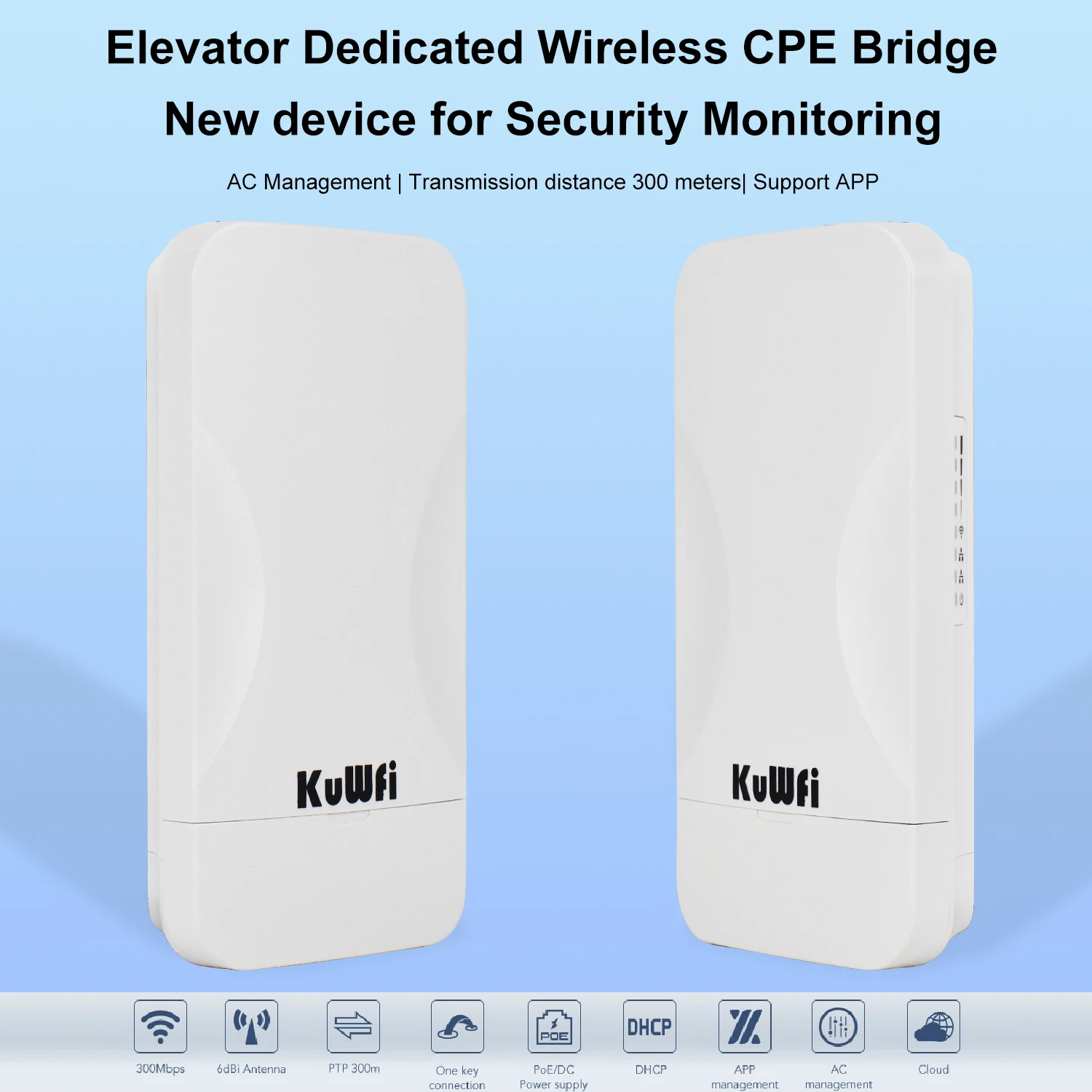 Built-in 6dBi directional antenna, PTP/PTMP connect distance up to 300 meter, very suitable for elevator wi-fi camera monitoring.
