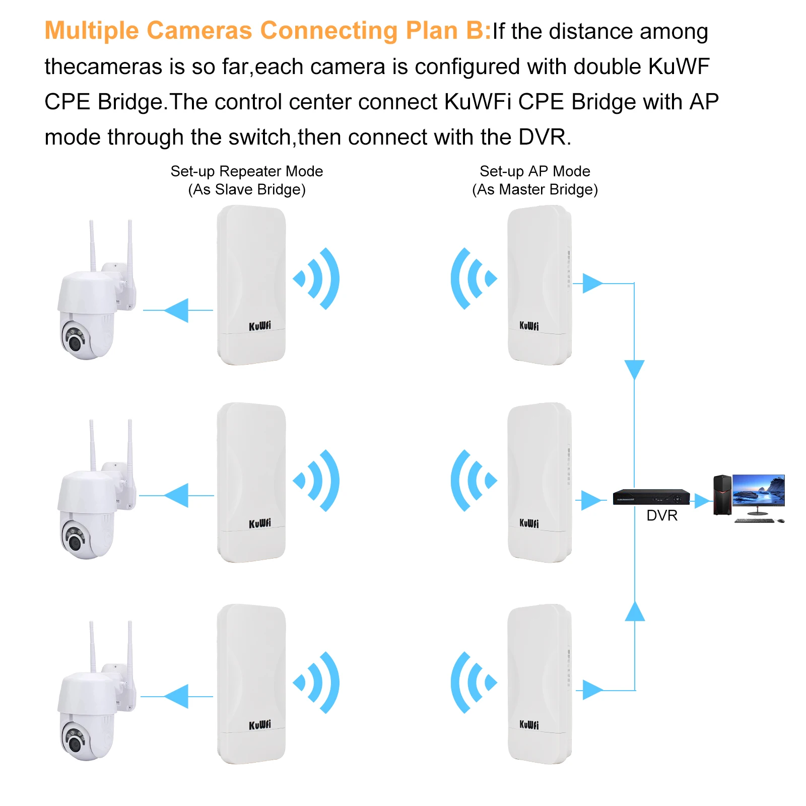 Comprar KuWFi 300Mbps elevador puente 2,4 Ghz inalámbrico WiFi PTP PTMP amplificador de señal hasta 300 metros Control de aplicación para Monitor de seguridad