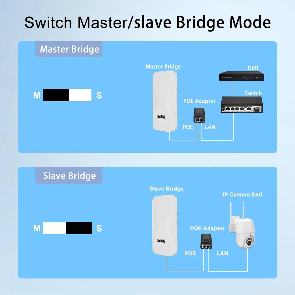 The CPE Bridge supports 12V PoE power supply and DC 12V power supply.The power supply mode of POE solves the problem that the network bridge can be placed remotely through the network cable.(Package does not include DC 12V power supply)
