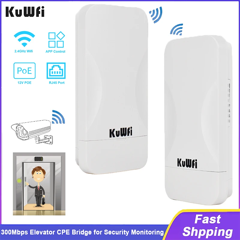 Comprar KuWFi 300Mbps elevador puente 2,4 Ghz inalámbrico WiFi PTP PTMP amplificador de señal hasta 300 metros Control de aplicación para Monitor de seguridad