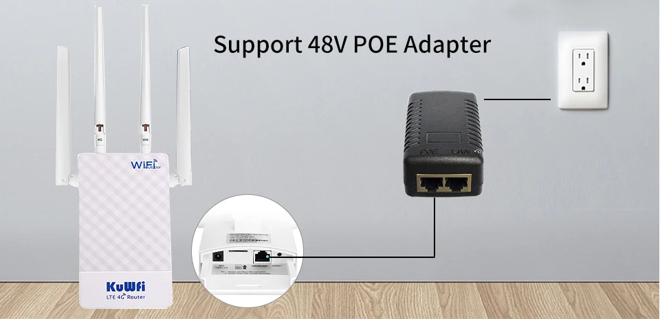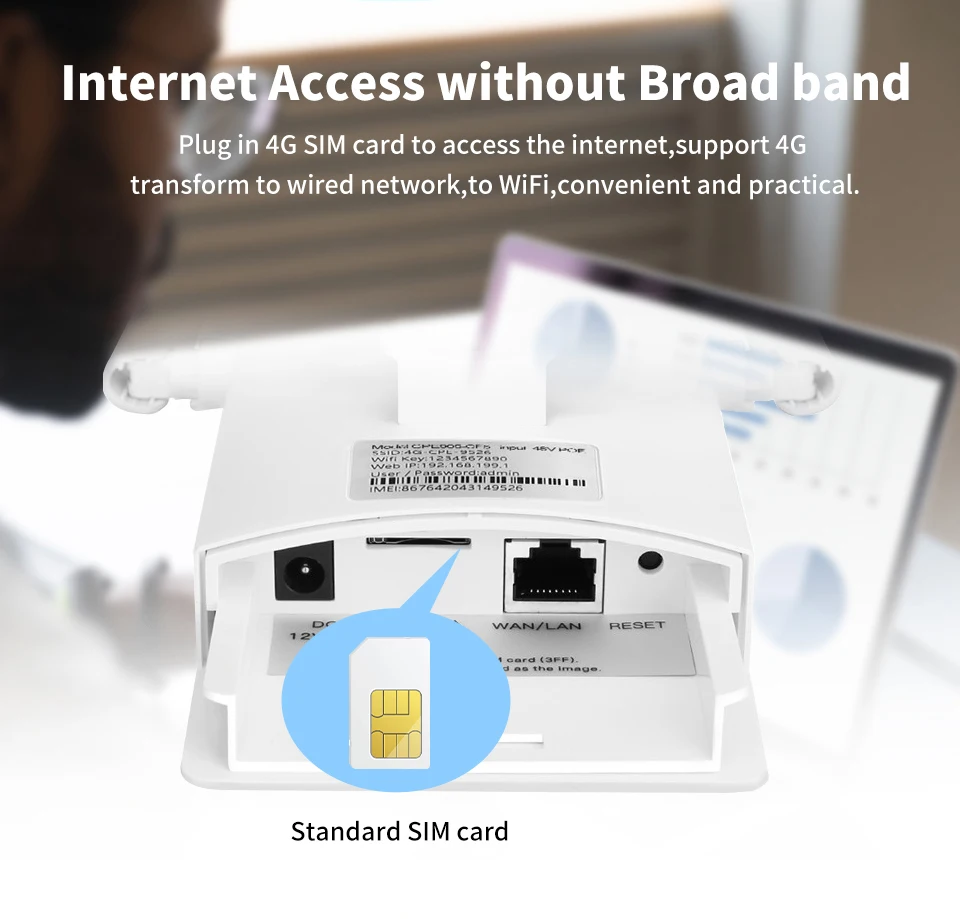 Si su señal interior es lo suficientemente fuerte, puede colocar el enrutador 4G en el interior.Después de insertar la tarjeta SIM, el enrutador puede proporcionar wifi directamente para computadoras y teléfonos móviles.