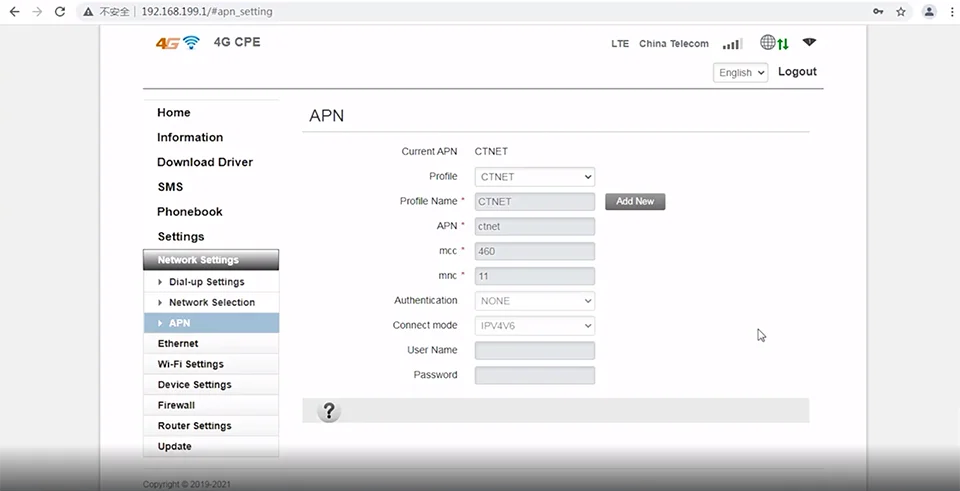 Inserte la tarjeta SIM y luego encienda el enrutador. Incluso si su tarjeta SIM es compatible con el producto, no necesariamente es plug and play, es posible que deba desactivar el código PIN de la tarjeta SIM y modificar el APN.Ingrese la dirección IP del enrutador: 192.168.199.1 y haga clic en Red—APN—Activar.Modificar APN.Puede encontrar el APN de la tarjeta SIM en el sitio web oficial del operador o en el teléfono móvil.Asegúrese de que la tarjeta SIM esté activada, no admita el servicio de roaming ni la tarjeta SIM virtual ni la tarjeta SIM IoT