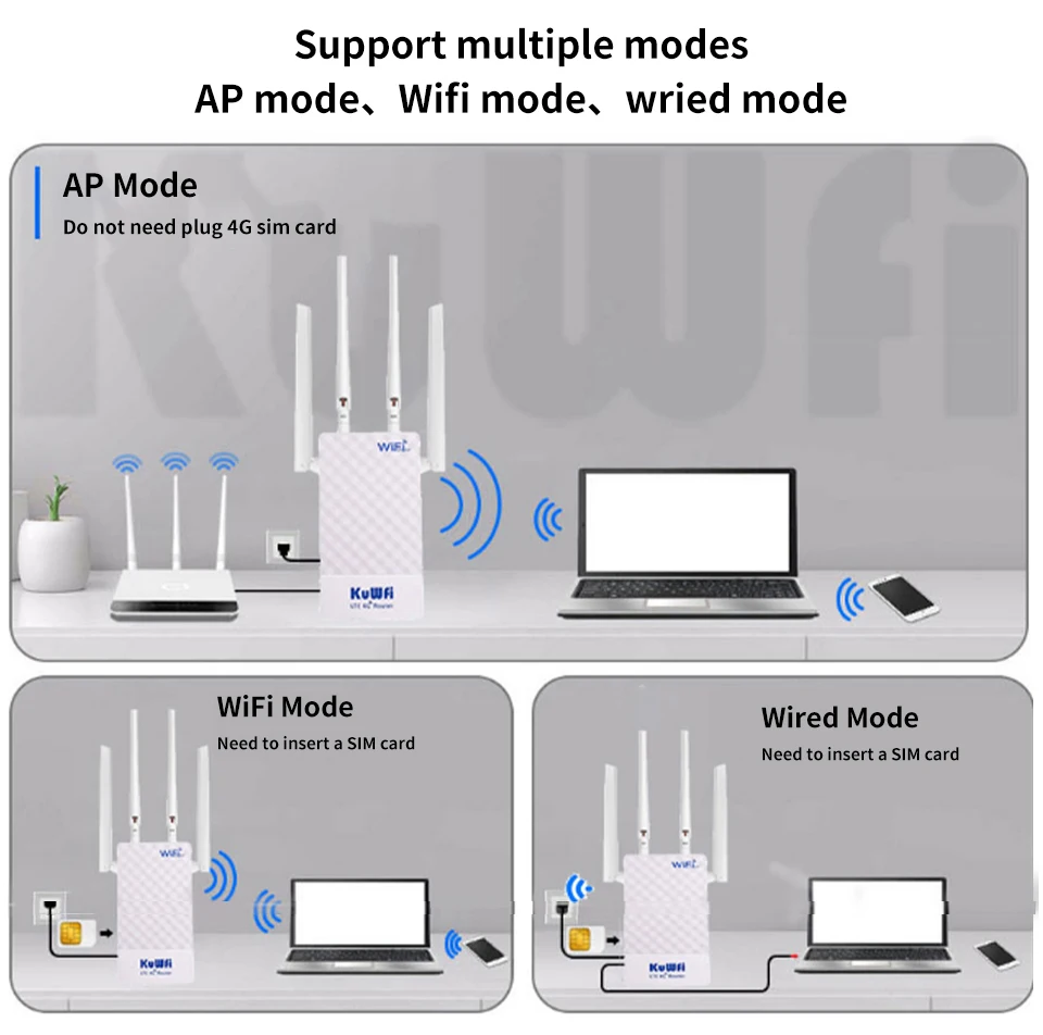 El dispositivo está equipado con antenas omnidireccionales de alta ganancia de 2,4G y 4G, que son más estables ya sea con acceso a Internet por cable o inalámbrico.