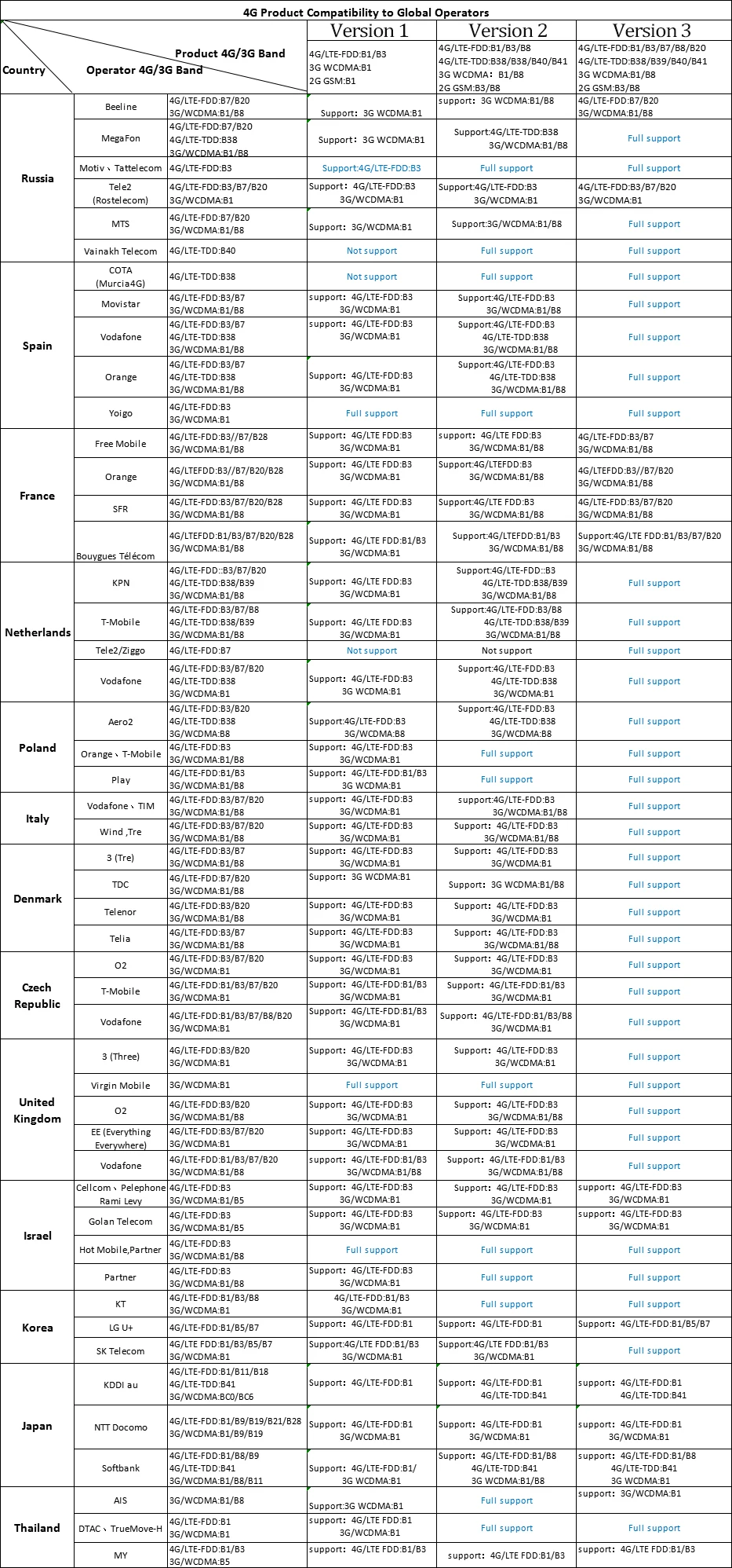 3. Si no comprende la banda de frecuencia de la tarjeta SIM de su país, consulte el siguiente enlace;