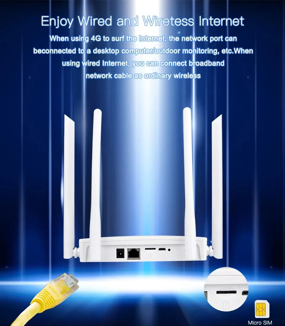 With a SIM card slot and RJ45 ports, say goodbye to the trouble of no net available, plug in the card and have net anytime and anywhere.
